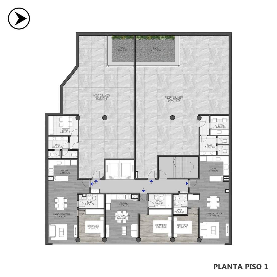 Living comedor con cocina americana y balcón corrido al frente. Dormitorio con placard y voladizo sobre calle Balcarce. Baño completo. Edificio ubicado en Balcarce 500, dentro del primer anillo perimetral de la ciudad de Rosario, provincia de Santa Fe. Zona céntrica, a 100 metros de Bv. Oroño y 200 metros de calle Córdoba, Paseo del Siglo, próximo a instituciones educativas: escuelas, universidades, instituciones médicas: sanatorios, clínicas y una gran variedad de comercios de rubros diversos. Edificio energéticamente eficiente con aislación térmica en paredes exteriores y losas de azotea. Hall de ingreso jerarquizado por la doble altura y por la materialidad empleada en este ambiente. Primer piso se oficinas con ingreso independiente y unidades de vivienda desde el piso 2ª a 10ª con tipologías de 1,2 y 3 dormitorios. Terraza con amenities: Piscina - SUM - Quincho - Parrillero. Dos niveles de cochera. Los ascensores tienen paradas en todos los niveles permitiendo la comodidad de los habitantes del edificio. TERMINACIONES DEPARTAMENTOS: Desde el segundo piso se desarrollan unidades de vivienda de uno, dos y tres dormitorios con terminaciones de alta calidad.; Puertas de ingreso de seguridad.; Cocinas equipadas con alacenas y muebles bajo mesada, anafe de 4 hornallas, horno empotrado y calefón marca Longvie o similar, mesadas de granito y bachas de acero inoxidable.; Pisos porcelanatos en living, cocina, baños y balcones.; Piso de instalación flotante símil madera en dormitorios para brindar calidez a estos ambientes.; Placares con interior.; Amplios balcones aterrazados y aberturas de aluminio con doble vidriado hermético y/o cortinas de enrollar.; Preinstalación para AA. FORMA DE PAGO Financiación. Contado. COCHERA Opcional AMENITIES Piscina; Solárium; SUM; Quincho cubierto y sector de asador.Código web: CBU55992 AP7677286
