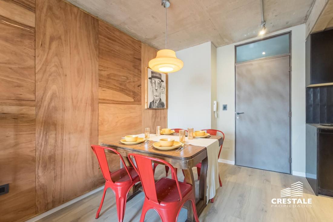 Departamento 1 dormitorio con distribución funcional. Ingreso a estar comedor de planta libre con cocina integrada, equipada con barra desayunadora y acceso a un amplio balcón al Este. Baño completo con antebaño independiente. Dormitorio al contrafrente, con placard incorporado y salida a balcón privado.Ubicado en el barrio Pichincha de la ciudad de Rosario, en una zona de consolidado crecimiento urbano, a pocas cuadras del Bv. Oroño y con fácil acceso a centros educativos, espacios culturales, parques y una amplia oferta gastronómica. La zona ofrece conectividad con el centro, las universidades y los principales corredores viales. El entorno se caracteriza por su identidad barrial, calles arboladas y una vida social activa que convive con propuestas residenciales contemporáneas. Edificio de planta baja y 4 pisos, compuesto por departamentos de 1 y 2 dormitorios, más dos casas tipo dúplex con jardín propio y terraza. TERMINACIONES Pisos de parquet en dormitorios y living; cerámicos en cocina, lavadero y baño; aberturas de aluminio; placares empotrados con interiores completos; artefactos de cocina y baño en perfecto funcionamiento; mesada de granito con bacha de acero inoxidable; griferías monocomando; cocina equipada con bajo mesada y alacenas AMENITIES Terraza,; Pileta; Solarium; Deck FORMA DE PAGO Financiación. Contado. COCHERA Opcional.Código web: CBU64446 AP7070438