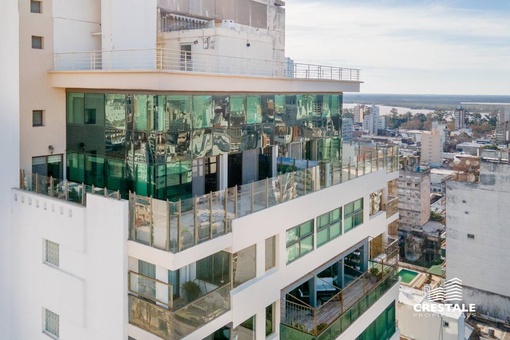 Espectacular dúplex con terraza, de 3 dormitorios, con 3 cocheras y baulera. Esta unidad tiene todo lo que una familia necesita, calidad, buenas vistas, independencia, y un balcón terraza de uso exclusivo. En la planta inferior encontramos: un gran living con salida al balcón terraza enorme con orientación Este y unas vistas impresionantes de la ciudad, con un sector con cesped natural. Cocina comedor diario super cómoda, con gran iluminación natural por todos lados. Sector de lavadero con baño de servicio, e ingreso de servicio. Toilette de recepcion. En la planta superior, se desarrollan los 3 dormitorios. El dormitorio principal, cuenta con unas vistas espectaculares en esquina, y tiene ante-baño, baño completo con yacuzzi, y un vestidor gigante. Luego, los dos dormitorios son asistidos por un baño completo con ante-baño. El edificio cuenta con todos los amenitites que podés imaginar, piscina exterior, parrillero, quincho cubierto, gimnasio, y sauna. Seguridad las 24 horas! Sistema de climatización frio/calor por aire central del departamento, con una unidad por nivel. Superficie Exclusiva: 236 m² (188 + 48 m² terraza) Superficie Total: 258 m²Edificio de gran categoría, sobre Bv. Oroño. Cuenta con PB + 21 pisos, con 3 ascensores Mitsubishi, seguridad privada con personal las 24hs, hall de ingreso en doble altura, con un acceso peatonal mediante un puente sobre espejos de agua. La ubicación es inmejorable, en la zona más cotizada de la ciudad, sobre Bv. Oroño y sus hermosas palmeras.Código web: CAP6617055
