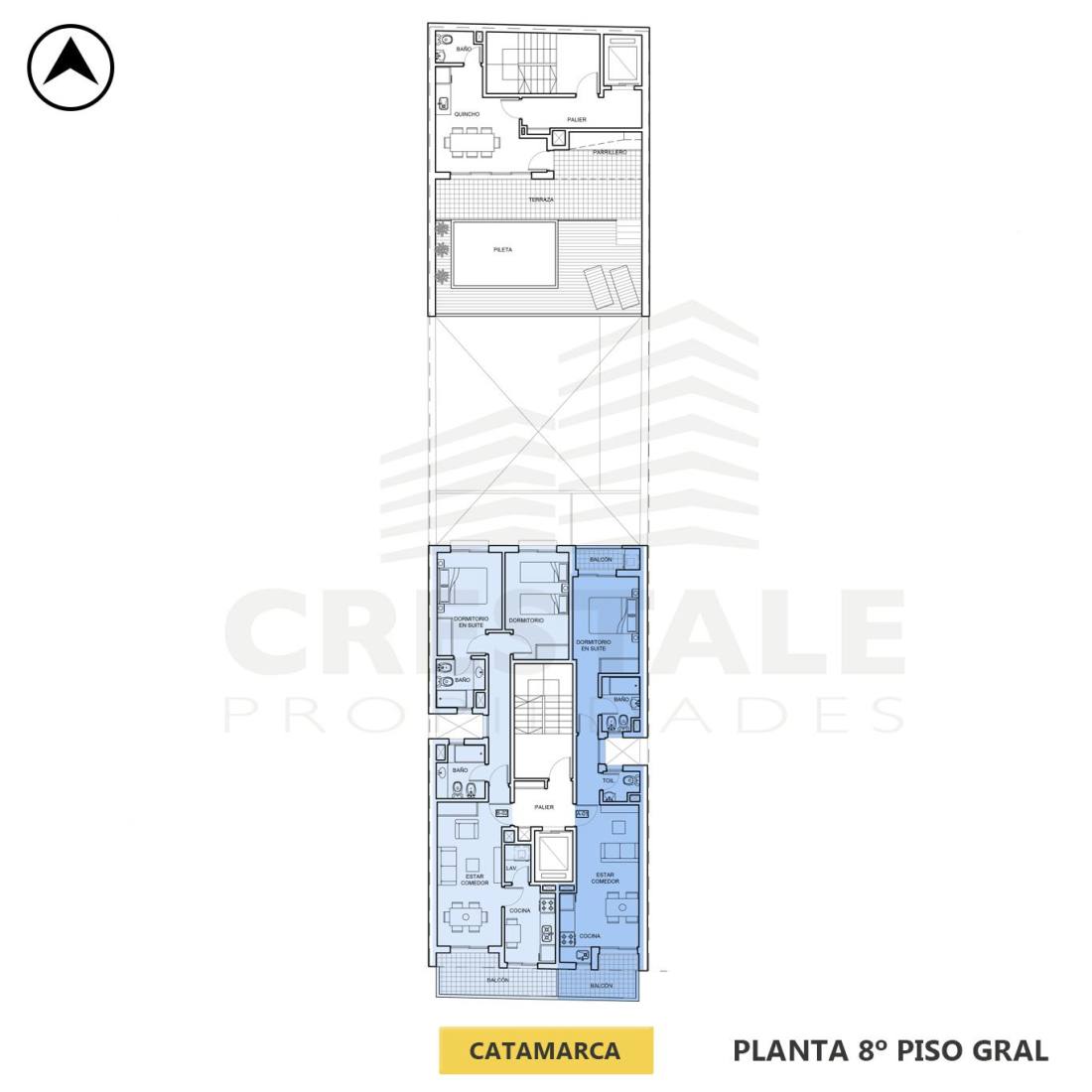 Unidad al frente. Estar comedor con cocina semiseparada y salida a amplio balcon. En el íntimo se desarrollan dos dormitorios, el principal en suite. Cuenta con 2 baños completos y lavadero independiente.CARACTERÍSTICAS GENERALES Edificio en construcción con excelente ubicado sobre calle Catamarca entre Corrientes y Entre Ríos. A pocas cuadras del Río, del Parque España y a minutos del centro de la ciudad. Compuesto por dos torres de excelente calidad constructiva, ambientes cómodos, funcionales y amenities. Edificio de semipisos de 8 pisos con unidades monoambientes, 1 y 2 dormitorios. AMENITIES Quincho; Solarium; Parrillero; Piscina COCHERA OpcionalCódigo web: CBU34667 AP7832925