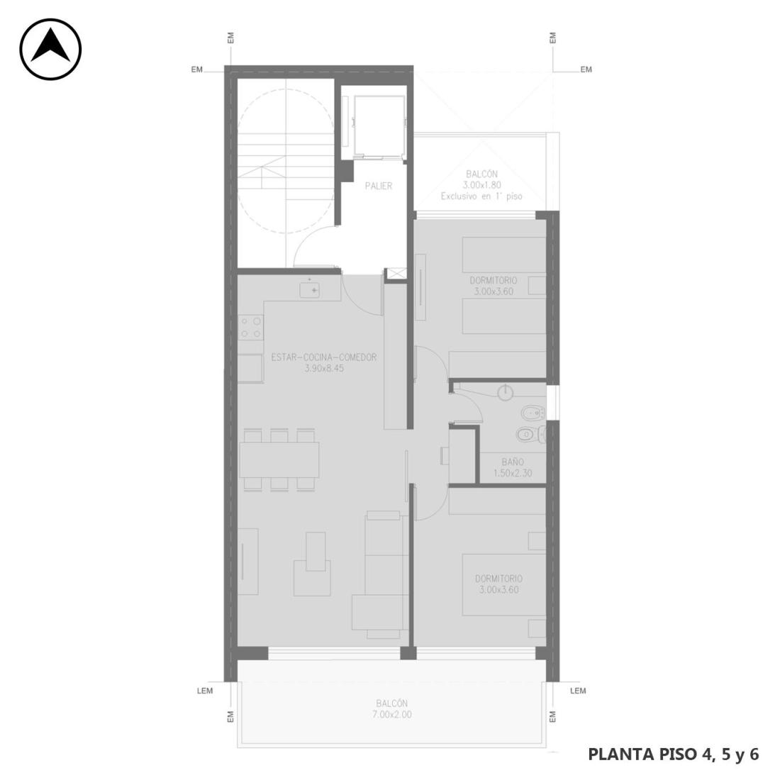 Piso exclusivo dos dormitorios con balcón corrido al frente y excelente ventilación cruzada. Ingreso directo a un amplio estar comedor con cocina integrada. Ambos dormitorios con placares empotrados, uno con salida a balcón privado y el otro con frente al balcón principal de 7 metros de largo. Baño completo central. Disposición funcional, espacios bien proporcionados y generosa superficie exterior.Ubicado en Cerrito 1500, a metros de Av. Pellegrini, este edificio se emplaza en una zona estratégica de Rosario, con cercanía inmediata a la Universidad Nacional de Rosario (Facultades de Ingeniería, Medicina, Odontología), centros de salud, locales comerciales y el Parque Independencia. Edificio de PB + 6 pisos, con 4 unidades por planta y cocheras opcionales. Ideal para usuarios finales y como inversión para renta por su entorno universitario y comercial consolidado. TERMINACIONES Aberturas de aluminio línea Módena con DVH; Puertas interiores marca Oblak; Cocina con amoblamiento completo bajo mesada y alacena, mesada de granito y bacha de acero inoxidable; Cocina y termotanque a gas instalados; Revestimientos cerámicos en cocina y baño; Artefactos sanitarios Ferrum y griferías FV; Pisos de porcelanato en estar-comedor y cocina; Dormitorios con frente de placard; Preinstalación para aire acondicionado Split AMENITIES Terraza de uso común con parrillero; Solárium con duchador; Espacio para tender en terraza; Cocheras opcionales en planta baja; Bicicletero FORMA DE PAGO Financiación. Contado. COCHERA Opcional.Código web: CBU64777 AP7106313
