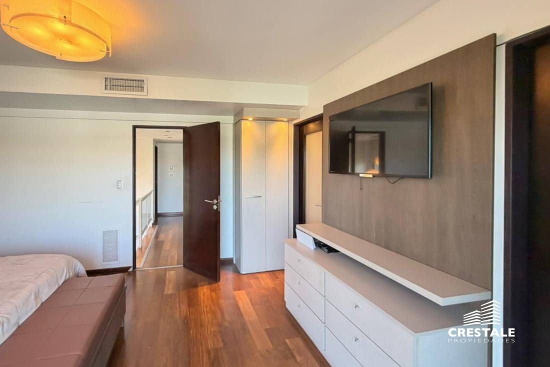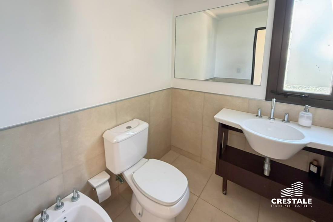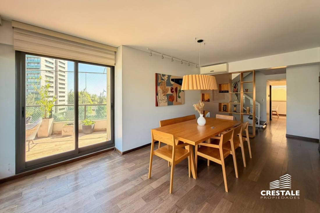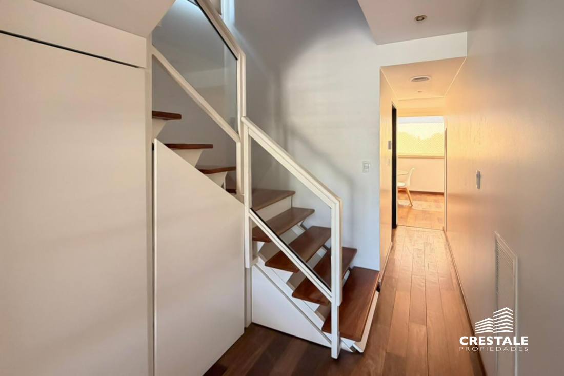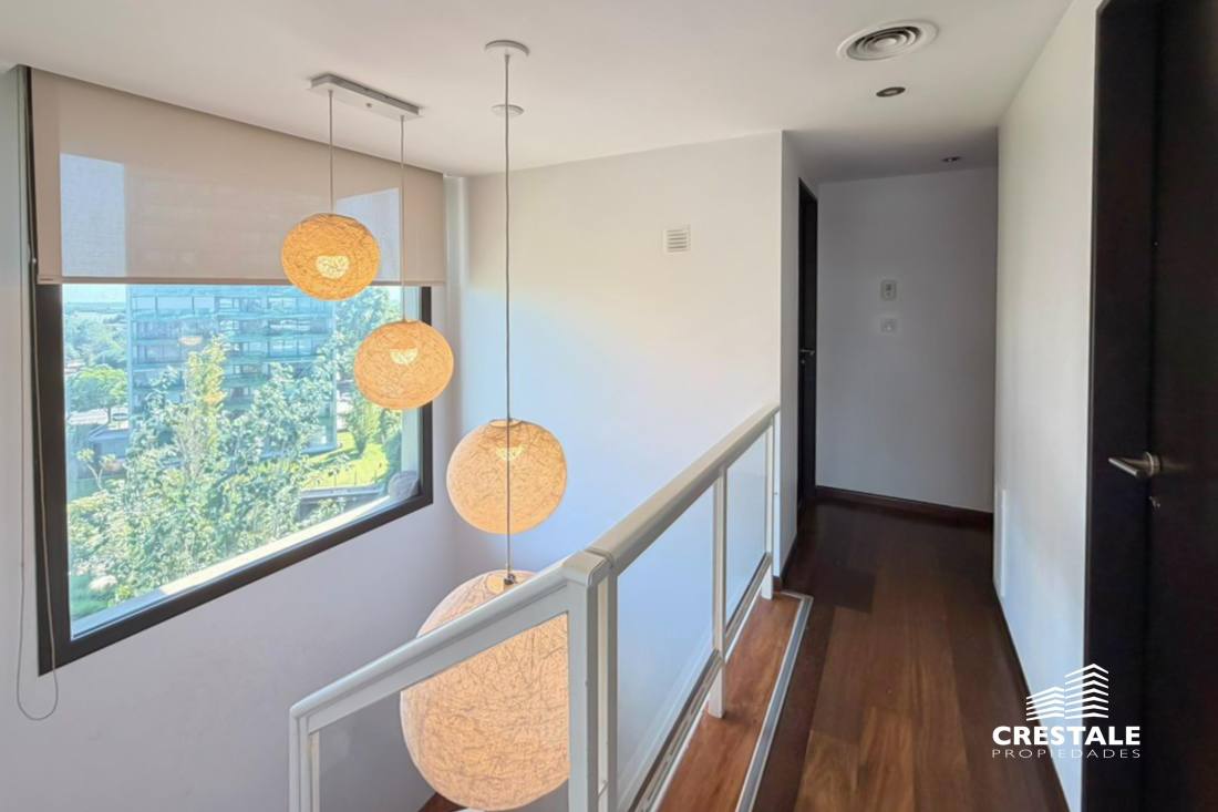 Dúplex de 3 dormitorios con cochera doble en Condominios del Alto 1, doble ingreso, el primero por el amplio living comedor con salida al balcón corrido con parrillero y vista al parque con espacio para living de exterior, toilette de recepción, cocina separada con comedor diario y balcón al contra frente. En la planta alta nos encontramos con el dormitorio principal con vestidor y en suite además tiene salida a un balcón aterrazado con vista al parque del condominio, además tenemos un baño completo que asiste a los dos dormitorios con placard completos. Condominios del Alto se encuentra ubicado en el área de Puerto Norte, un sector urbanístico reencontrado para la ciudad de Rosario, se ha convertido en uno de los puntos de mayor interés. Tiene una ubicación estratégica por su fácil accesibilidad desde cualquier punto de la ciudad, la proximidad con el Río y la cercanía con el Alto Rosario Shopping. Condominios 1 combina unidades, imponentes amenities, y cocheras desarrolladas en subsuelos. Cuenta con un ingreso vehicular privado con seguridad permanente, bauleras y bicicleteros, áreas verdes y seguridad 24 hs. Posee la comodidad de una casa, la practicidad de un departamento y la seguridad de un barrio privado. FORMA DE PAGO Contado AMENITIES Amplio lobby y sectores de estar en Planta baja; Piscina climatizada; Sauna; SUM divisible; Sector de parrillas; Gimnasio; Sala de relax con ducha; Vestuarios; Laundry equipado con lavarropas y secarropas industrial TERMINACIONES Ascensores con puertas automáticas; Pileta de cocina de acero inoxidable; Cocina amueblada con bajo mesada y alacena; Mesada de granito; Horno empotrado con anafe; Placares con interiores terminados; Aberturas de aluminio con DVH; Pisos de porcelanato en cocina y lavadero; Calefacción central.Código web: CCO46960 AP7660016