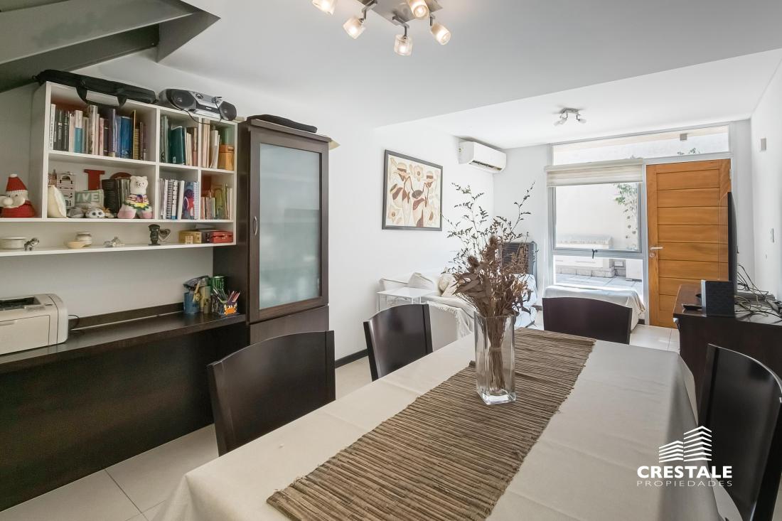 Venta / Permuta - Dúplex 2 dormitorios con patio y parrillero - Lourdes, Rosario. Unidad tipo dúplex ubicada en planta baja con disposición contrafrente y orientación sur. Cuenta con 75,83 m² cubiertos y 11,93 m² descubiertos, totalizando 87,76 m². En planta baja se desarrolla estar comedor amplio con cocina integrada y sector de lavadero, toilette de recepción y salida a patio exclusivo con parrillero. En planta alta se disponen dos dormitorios con placares y un baño completo. La unidad combina funcionalidad y distribución en dos niveles, con espacios exteriores propios y gas natural. Estado general excelente con antigüedad aproximada de 4 años. Edificio residencial con amenities y ubicación estratégica en Lourdes, próximo a Bv. Oroño y al área central.Edificio Malena desarrollado por Fundar, ubicado en Córdoba 2300, en barrio Lourdes. El proyecto se compone de unidades residenciales con acceso común y espacios compartidos. Emplazado en una zona consolidada con cercanía a Bv. Oroño, Av. Pellegrini, instituciones educativas, centros de salud y espacios verdes. Entorno con amplia oferta comercial y buena conectividad hacia el centro de Rosario. Código web: CAP7934310