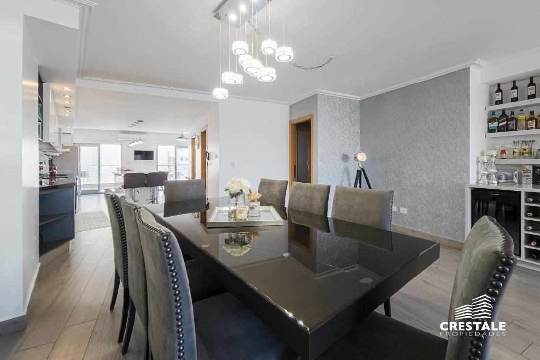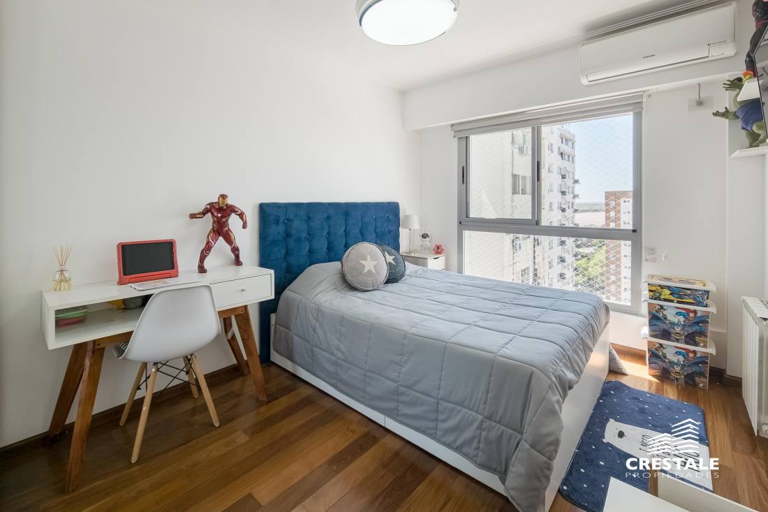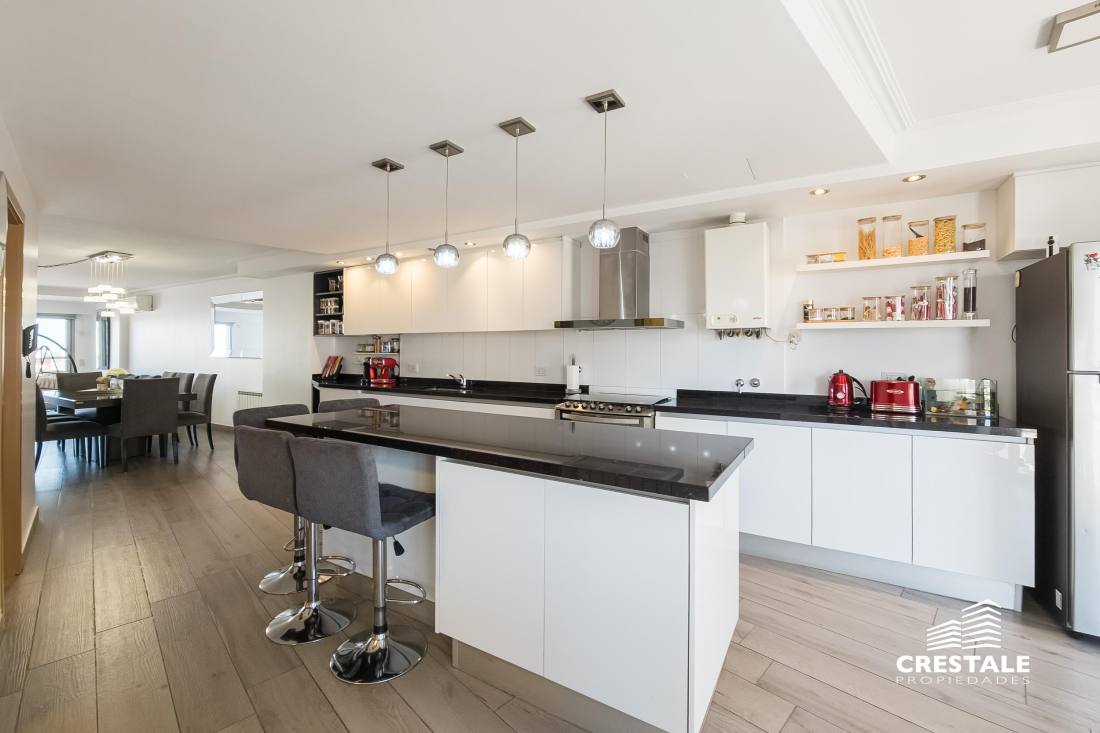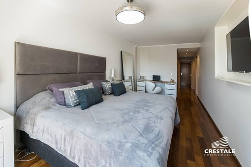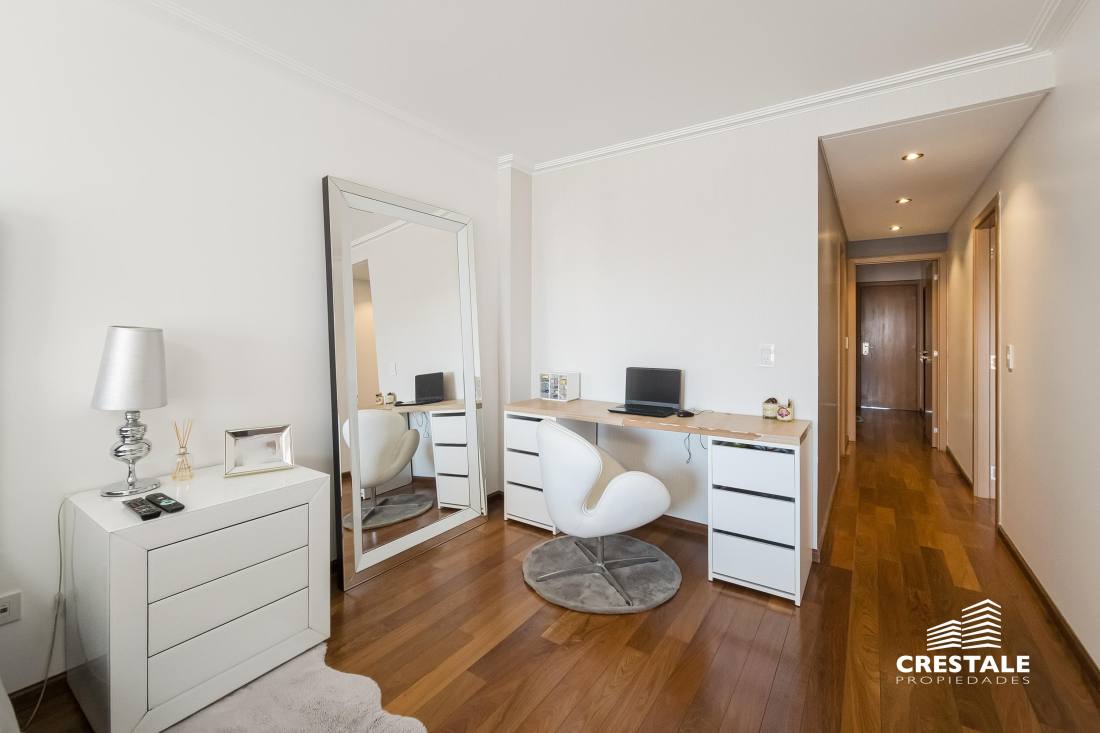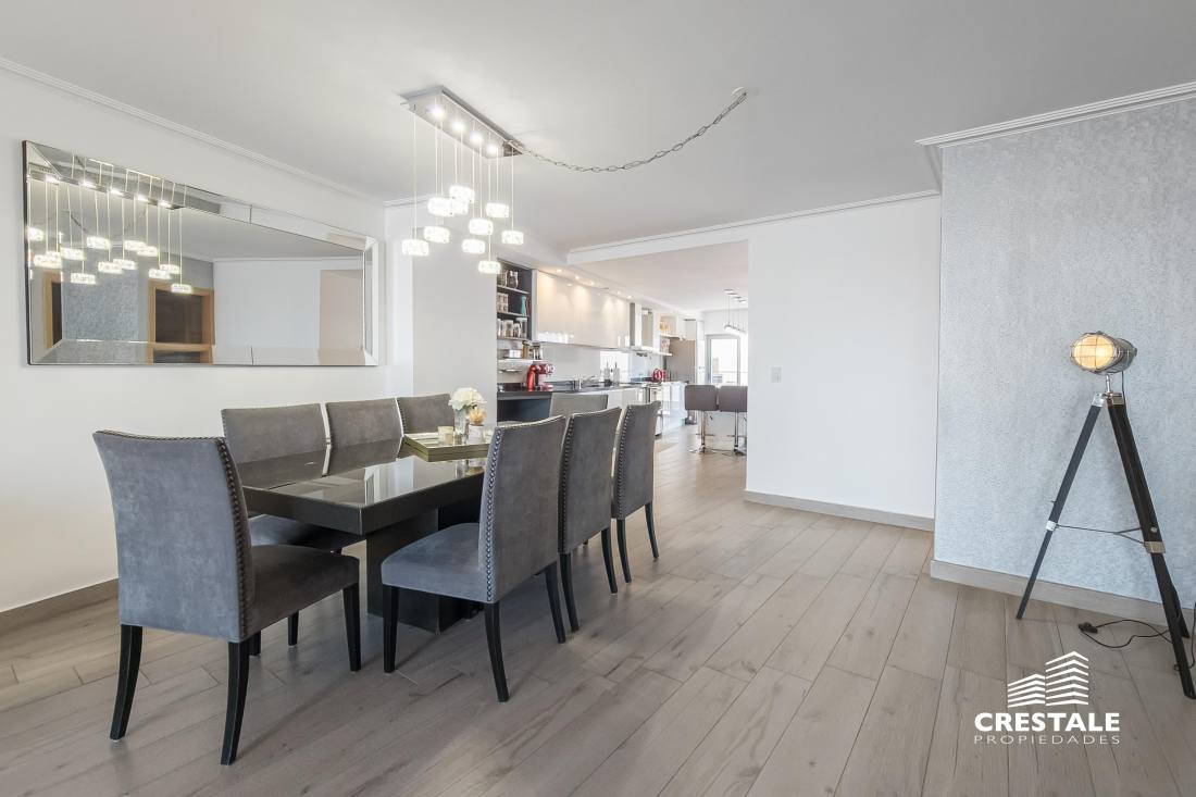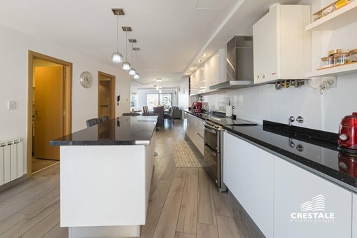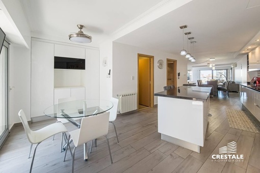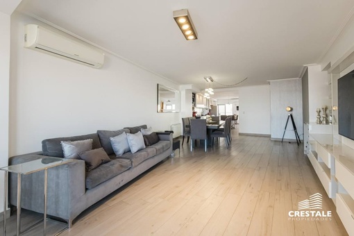 Venta - Departamento 3 dormitorios en piso exclusivo, doble balcón y 2 cocheras - Zona Río, Rosario Departamento de piso exclusivo ubicado en piso 12, con 212 m² totales construidos. Disposición al frente con orientación oeste y contrafrente este, lo que garantiza ventilación cruzada y excelente iluminación natural. Ingreso a amplio living comedor con ventanales al frente y salida a balcón aterrazado. Playroom independiente contiguo al área social. Cocina completamente equipada con isla central y salida a segundo balcón al contrafrente. Lavadero independiente y baño de servicio. Sector íntimo compuesto por tres dormitorios en suite, todos con ventilación natural al contrafrente. Dormitorios secundarios con placares empotrados. Dormitorio principal con vestidor. Calidad constructiva Rinaldi. Pisos de madera de ingeniería flotante en ambientes principales y porcelanato en espacios húmedos. Aberturas de aluminio anodizado de alta prestación con DVH y mosquiteros. Persianas en dormitorios y toldos al frente oeste. Balcones con red de seguridad. Calefacción por radiadores mediante caldera dual. Preinstalación para equipos de aire acondicionado en todos los ambientes. Puerta de ingreso de seguridad. Artefactos y griferías de primeras marcas, detalles en mármol y carpintería a medida. Cocina equipada con cuatro hornallas y horno visor. Gas natural activo. Edificio ubicado en Dorrego bis, en el sector Zona Río de Rosario, a metros del Parque España, del corredor ribereño y del Río Paraná. Zona residencial consolidada con cercanía inmediata a espacios verdes, áreas recreativas y gastronómicas del frente costero. Próximo al centro de la ciudad y con excelente conectividad hacia los principales accesos urbanos. Edificio de PB + 13 pisos, torre única, con dos ascensores y unidades de piso exclusivo. Expensas $ 300.000. Código web: CAP7811772