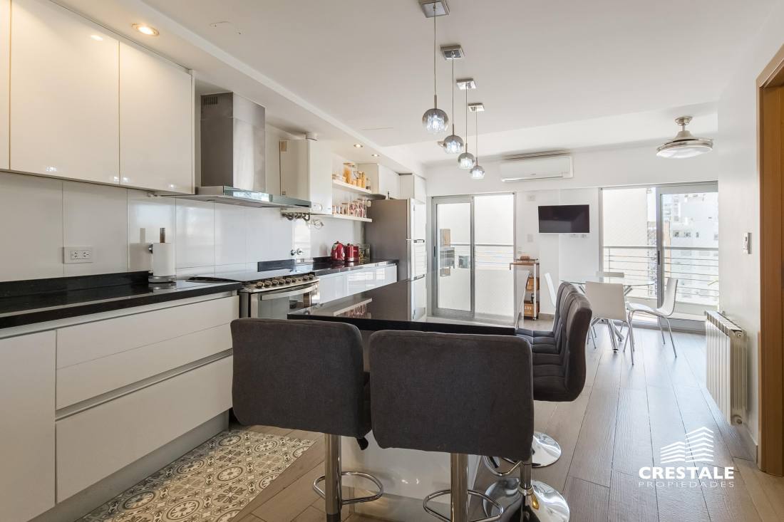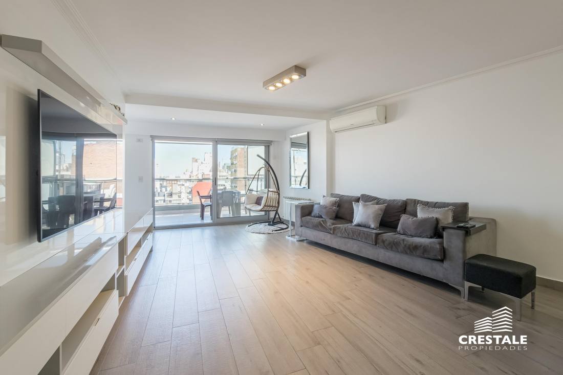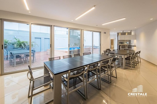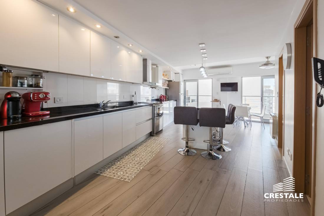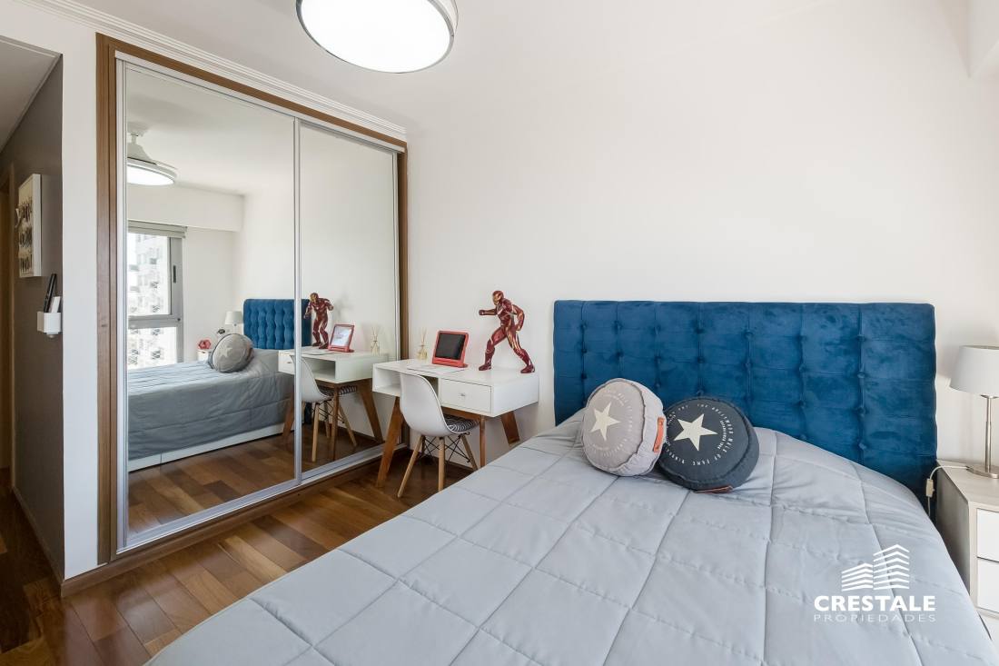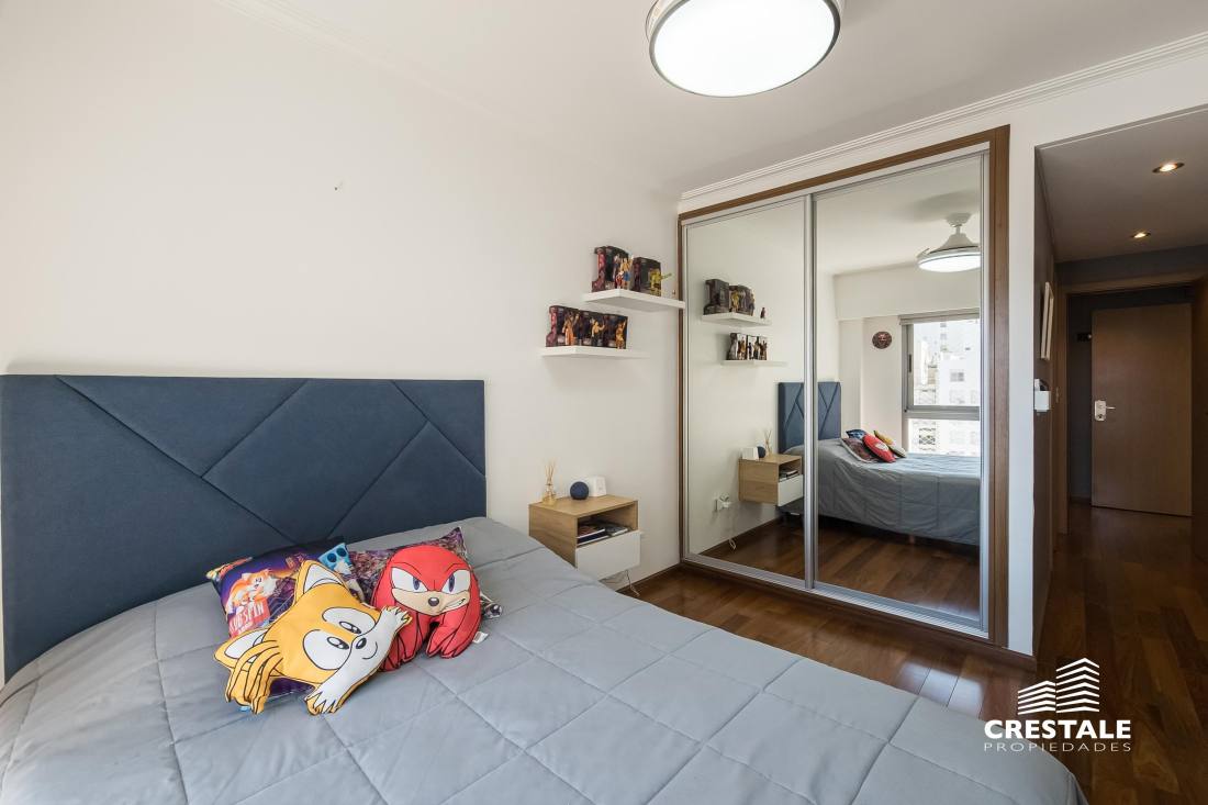 Venta - Departamento 3 dormitorios en piso exclusivo, doble balcón y 2 cocheras - Zona Río, Rosario Departamento de piso exclusivo ubicado en piso 12, con 212 m² totales construidos. Disposición al frente con orientación oeste y contrafrente este, lo que garantiza ventilación cruzada y excelente iluminación natural. Ingreso a amplio living comedor con ventanales al frente y salida a balcón aterrazado. Playroom independiente contiguo al área social. Cocina completamente equipada con isla central y salida a segundo balcón al contrafrente. Lavadero independiente y baño de servicio. Sector íntimo compuesto por tres dormitorios en suite, todos con ventilación natural al contrafrente. Dormitorios secundarios con placares empotrados. Dormitorio principal con vestidor. Calidad constructiva Rinaldi. Pisos de madera de ingeniería flotante en ambientes principales y porcelanato en espacios húmedos. Aberturas de aluminio anodizado de alta prestación con DVH y mosquiteros. Persianas en dormitorios y toldos al frente oeste. Balcones con red de seguridad. Calefacción por radiadores mediante caldera dual. Preinstalación para equipos de aire acondicionado en todos los ambientes. Puerta de ingreso de seguridad. Artefactos y griferías de primeras marcas, detalles en mármol y carpintería a medida. Cocina equipada con cuatro hornallas y horno visor. Gas natural activo. Edificio ubicado en Dorrego bis, en el sector Zona Río de Rosario, a metros del Parque España, del corredor ribereño y del Río Paraná. Zona residencial consolidada con cercanía inmediata a espacios verdes, áreas recreativas y gastronómicas del frente costero. Próximo al centro de la ciudad y con excelente conectividad hacia los principales accesos urbanos. Edificio de PB + 13 pisos, torre única, con dos ascensores y unidades de piso exclusivo. Expensas $ 300.000. Código web: CAP7811772