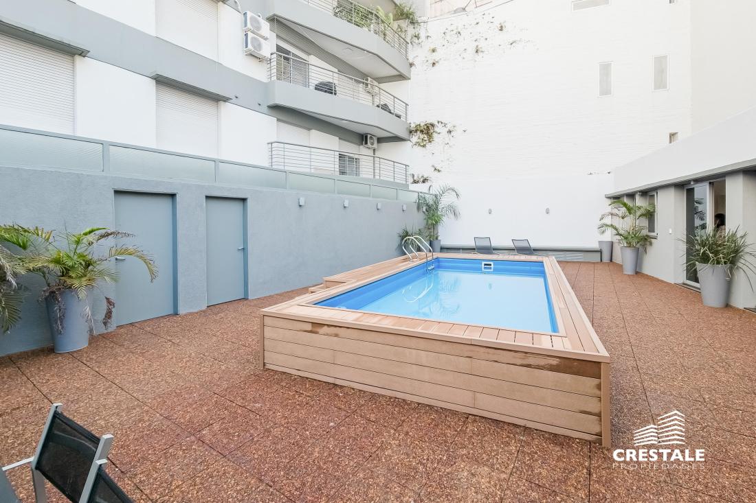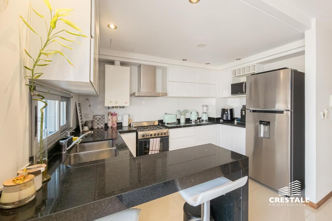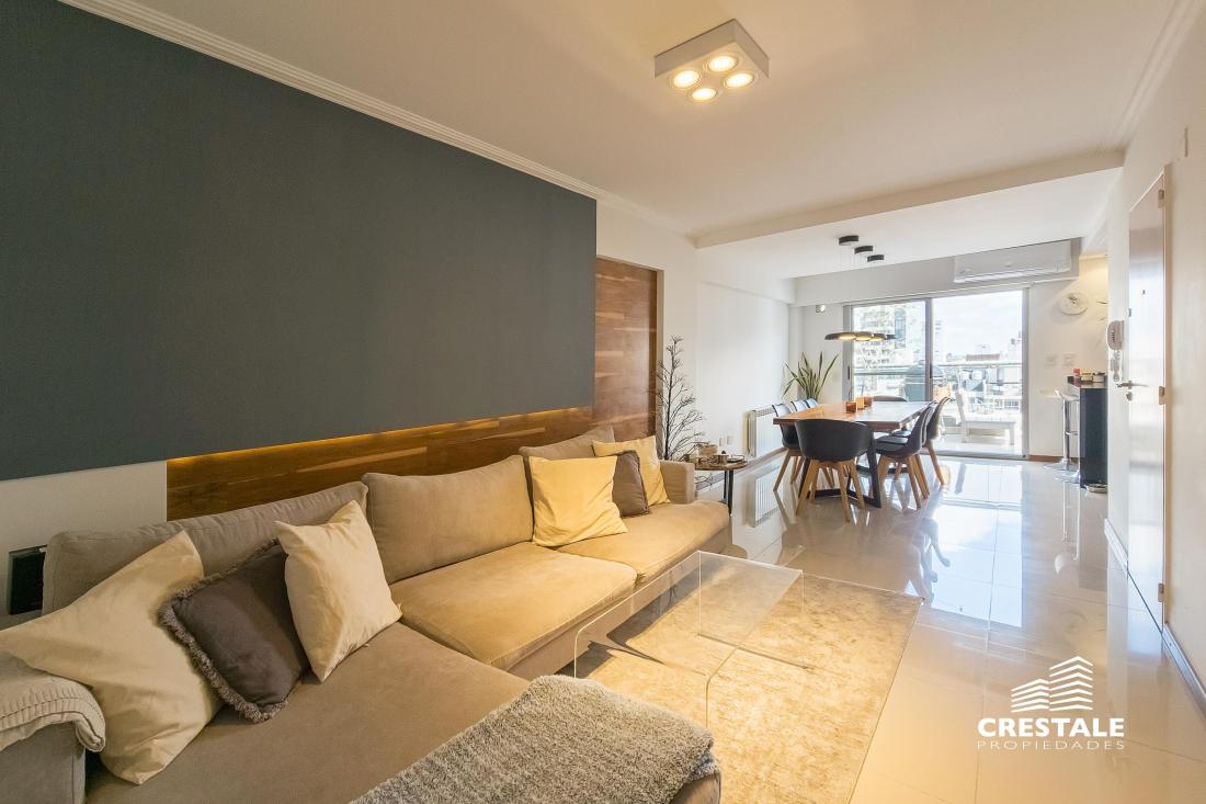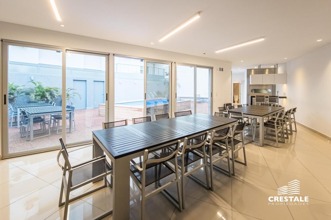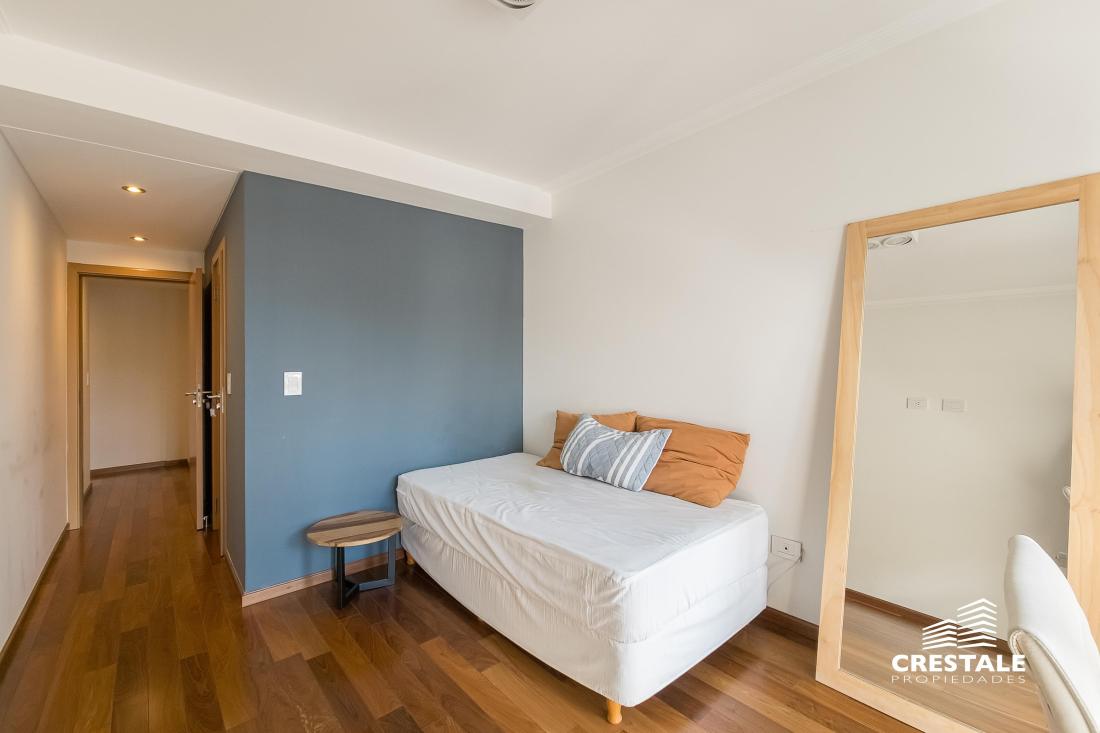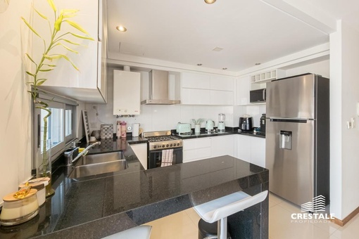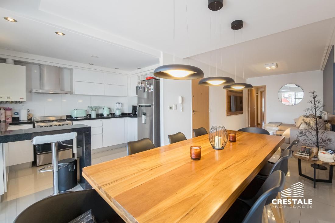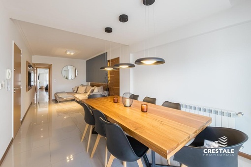 Venta / Permuta - Departamento 2 dormitorios de calidad premium con cochera - Parque España, Rosario. Piso alto, de Dos dormitorios, con una cochera en Planta Baja. Hermoso semipiso de 2 dormitorios, al frente con balcón terraza y vista lateral al rio. Living-comedor amplio con salida a un balcón terraza enorme al frente, con vista despejada y lateral al rio. Cocina completa, separada al estar mediante una barra desayunadora. Lavadero independiente. En su parte privada, se encuentran los 2 dormitorios, ambos con vestidor independiente. El dormitorio principal cuenta con baño completo en suite. Un segundo baño completo sirve al segundo dormitorio. Cuenta con trabajos de interiorismo en living y dormitorio principal. Cochera dentro del edificio, en Plan Baja, incluida en el precio. Excelente calidad de materiales y terminaciones. Persianas eléctricas en todas las aberturas. Sistema de calefacción por radiadores. Aberturas de aluminio. Superficie Exclusiva: 95 m² (84 + 11 m² balcón) Edificio de categoría con unidades de 2 y 3 dormitorios y ubicación estratégica a metros del río y Bv. Oroño. Solares de Dorrego se desarrolla en Dorrego 0 bis con 11 pisos, 22 departamentos de 2 y 3 dormitorios y dos niveles de unidades exclusivas. Emplazado en una de las zonas más buscadas de Rosario, se encuentra próximo al río Paraná, Parque de las Colectividades y al corredor de Bv. Oroño. Entorno con cercanía a instituciones educativas, espacios verdes, paseos turísticos y una amplia oferta comercial y gastronómica, consolidando una ubicación de alto valor urbano. Código web: CAP7899320