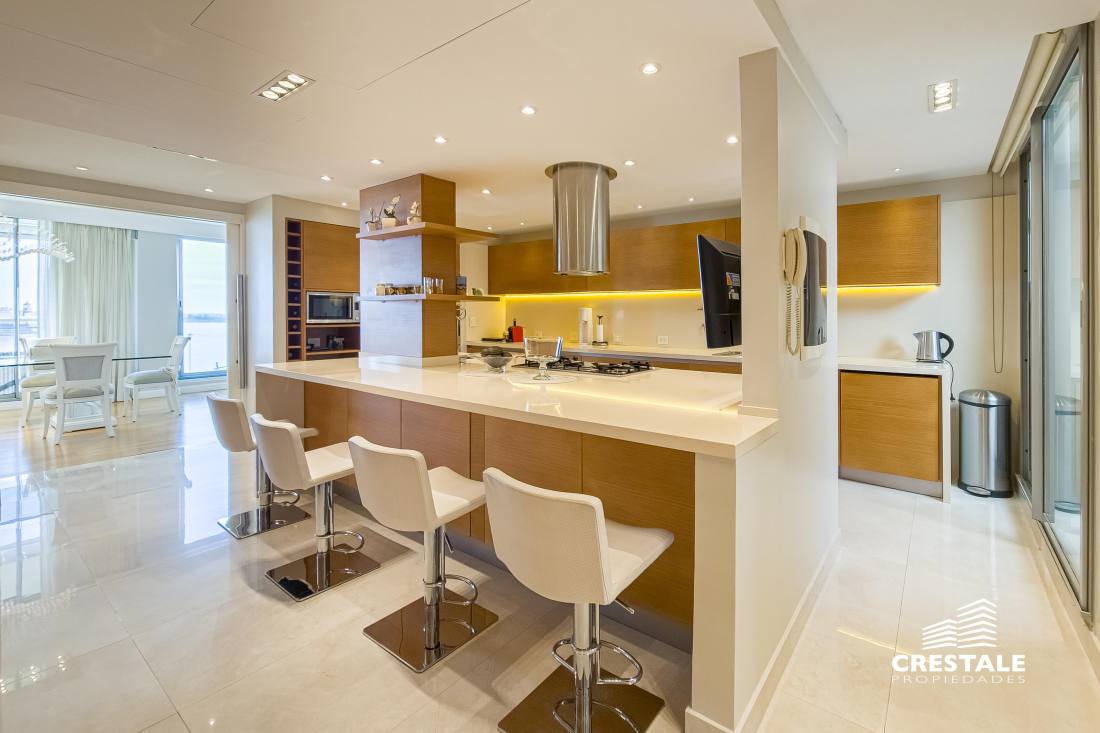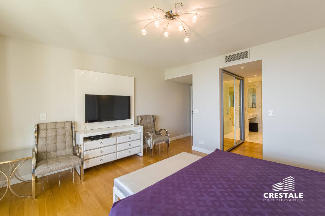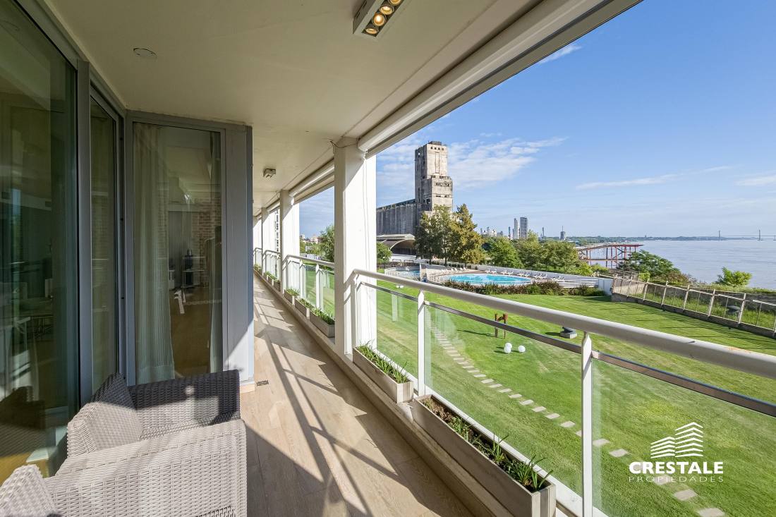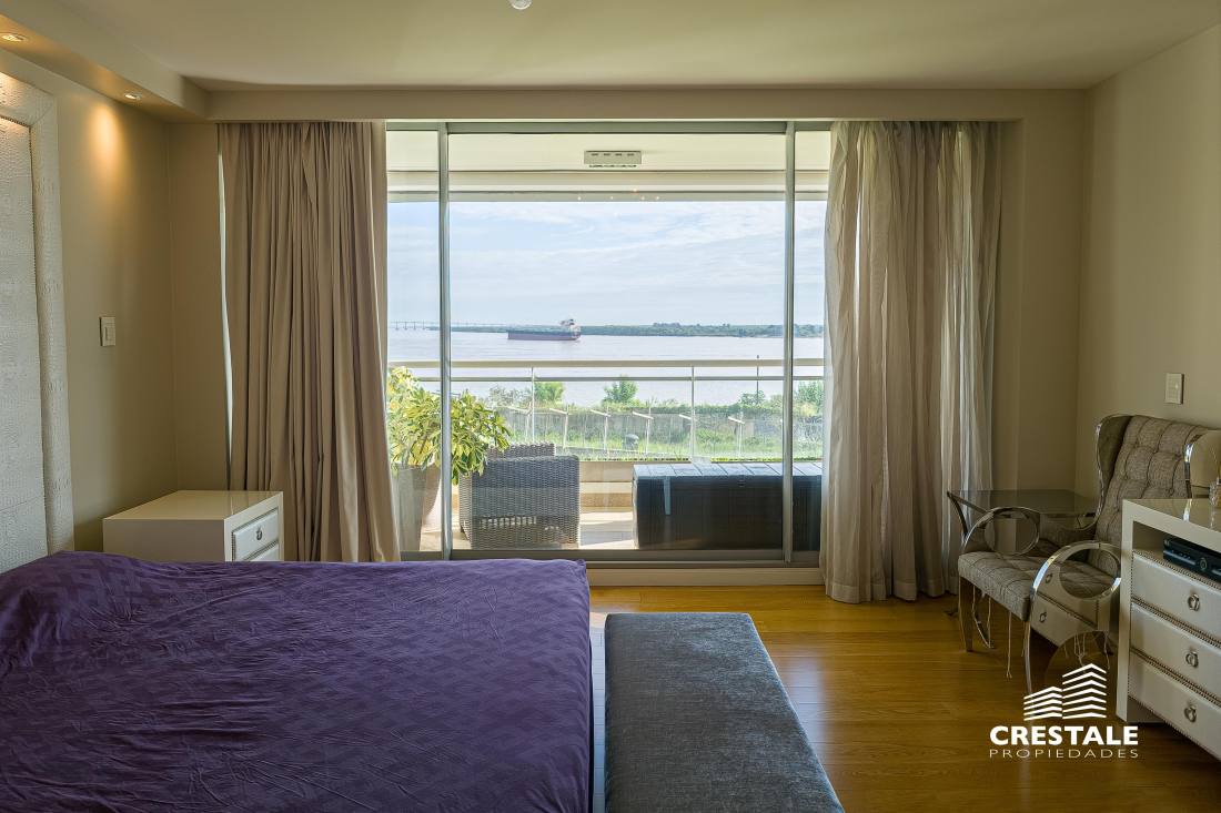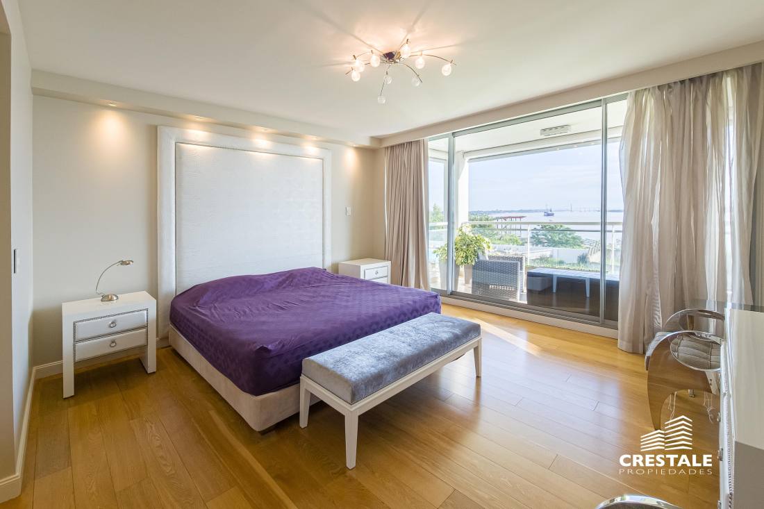 Departamento piso exclusivo de 3 dormitorios con vista al rio en Forum! Cuenta con cuatro cocheras y una baulera, incluidas en el precio! Hermoso piso exclusivo de 3 dormitorios, en una de las torres más lindas de Forum. Con un amplio balcón al frente con vistas hacia el rio Paraná y el parque interno del complejo, con sus hermosas piletas y lugar verde de esparcimiento, ideal para familias con chicos. Living-comedor enorme con orientación al norte con alucinantes vistas, una enorme cocina completamente reciclada con espacio de comedor diario y balcón con parrillero, lavadero independiente con espacio para lavarropas y secarropas, toilette de recepción. Tres dormitorios, el principal con vestidor y baño en suite (con hidromasaje) orientado también al norte con vistas francas al rio Paraná, y luego un íntimo que distribuye a dos dormitorios, uno también con vestidor y baño en suite. La cocina fue reciclada en su totalidad, las cortinas son todas eléctricas. Primera calidad de materiales, aberturas marca Technal. Sistema de refrigeración por aire, calefacción por losa radiante. Superficie Total Exclusiva: 280 m² (241 + 39 m² balcón)Superficie Total: 507 m²Superficie Baulera: 2,50 m² Forum, ubicado en Puerto Norte. Perfecta ubicación donde todos buscan vivir y en una zona de auge inmobiliario. El emprendimiento cuenta con una plaza central con sectores de descanso y áreas de lectura, 10.300 m2 de jardines, piscina cubierta climatizada, piscina descubierta con solárium, espacios para niños: parque de juegos, piscina con cascada, guardería infantil, sala de relax, sauna, gimnasio y vestuarios, canchas de tenis, guardería náutica, parrilleros, S.U.M. con terraza panorámica, Business center, Bauleras, Laundry, Vigilancia central las 24hs. Compuesto por 9 torres residenciales, 2 edificios de oficinas. Es un hermoso complejo ofrece la experiencia de vivir en departamentos con la seguridad y libertad de un barrio privado, junto a un inmejorable entorno natural verde y con amenities de todo tipo. Guardería náutica propia, con muelle sobre el río Paraná! Ideal para bajar del departamento a tu lancha y cruzar a la isla! Gran parque verde totalmente privado, Sector de juegos de niños exterior, Piscina enorme con solarium, Piscina interior CLIMATIAZADA, Gimnasio completamente equipado, Sala de Relax, box de masajes, Sauna, Vestuario, Quincho totalmente equipado, Parrilleros sobre el RIO! Cancha de tenis Código web: CAP7877924