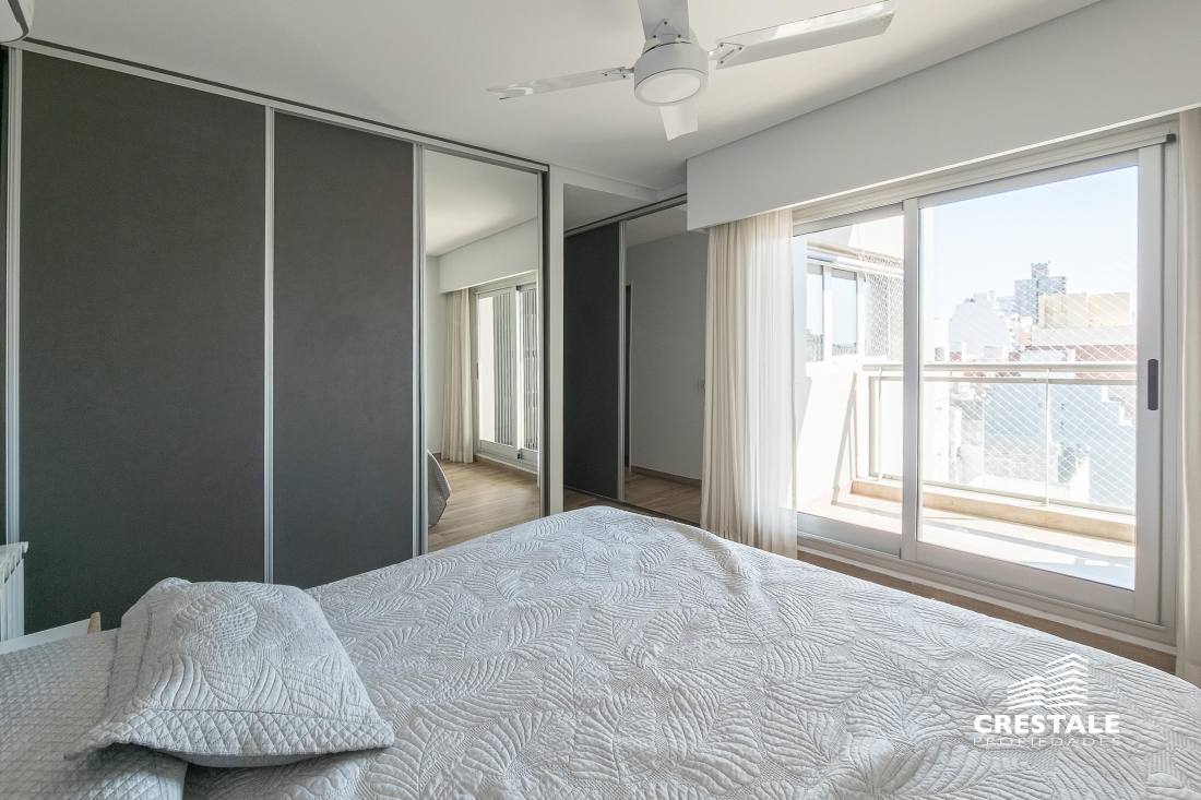 Venta / Permuta - Departamento 3 dormitorios en piso exclusivo - Parque España, Rosario. Departamento piso exclusivo de 3 dormitorios! Excelente ubicación en pleno Parque España! Con dos cocheras simples y 2 bauleras (aparte del precio - U$D 50.000). El departamento cuenta con un gran living comedor hacia el frente sobre calle Italia, una amplia cocina con comedor diario y salida a un balcón con parrillero. Lavadero independiente con ventilación natural. En la parte intima se desarrollan 3 dormitorios, dos de los cuales cuentan con baño en suite y balcones privados. Al tercer dormitorio lo asiste un baño más. Dispone de 2 ingresos, de los cuales el principal entra directamente al living. Ambas puertas son blindadas y cuentan con cerraduras biométricas. Cuenta con un montón de mejoras: Cortinas eléctricas en la parte del living. Abertura hermética en uno de los dormitorios. Trabajo de herrería para ocultar los quipos exteriores de aire acondicionado. Frente de la parrilla. Doble muro en el dormitorio principal para evitar cualquier tipo de ruidos. Puertas son blindadas y cuentan con cerraduras biométricas. Mueble de escritorio empotrado en uno de los dormitorios, mueble de guardado en el comedor diario, mueble de escritorio en el íntimo del ingreso. Cortinas tipo screen/blackout en las aberturas. Fibra óptica tirada en todas las bocas del departamento. Sistema de seguridad por sensores. Superficie de uso exclusiva: 152 m² (Cubierta: 139 m² - Semicubierta: 13 m²) Edificio de jerarquia, en pleno Parque España. De planta baja y 18 pisos, el proyecto cuenta con amenities de primer nivel, se destacan la piscina con borde infinito y solarium con vistas panorámicas a la ciudad y al río, dos salones quinchos completamente equipados, gimnasio con máquinas de primera calidad, cancha de squash y laundry. El edificio dispone de ascensores Fujitec, generador eléctrico que abastece tanto a los ascensores como a los departamentos, recepción y seguridad privada nocturna, Tiene terminaciones de alta calidad, incluyendo aberturas de aluminio anodizado Aluar A30 con doble vidriado hermético (DVH), calefacción por radiadores y aire acondicionado frío/calor. Los placares poseen interiores y espejos de piso a techo, mientras que la cocina está equipada con artefactos Ariston y muebles Rauvisio de la marca alemana Rehau. Además, la grifería es Hansgrohe, también de origen alemán, garantizando diseño y durabilidad. Código web: CAP7811204