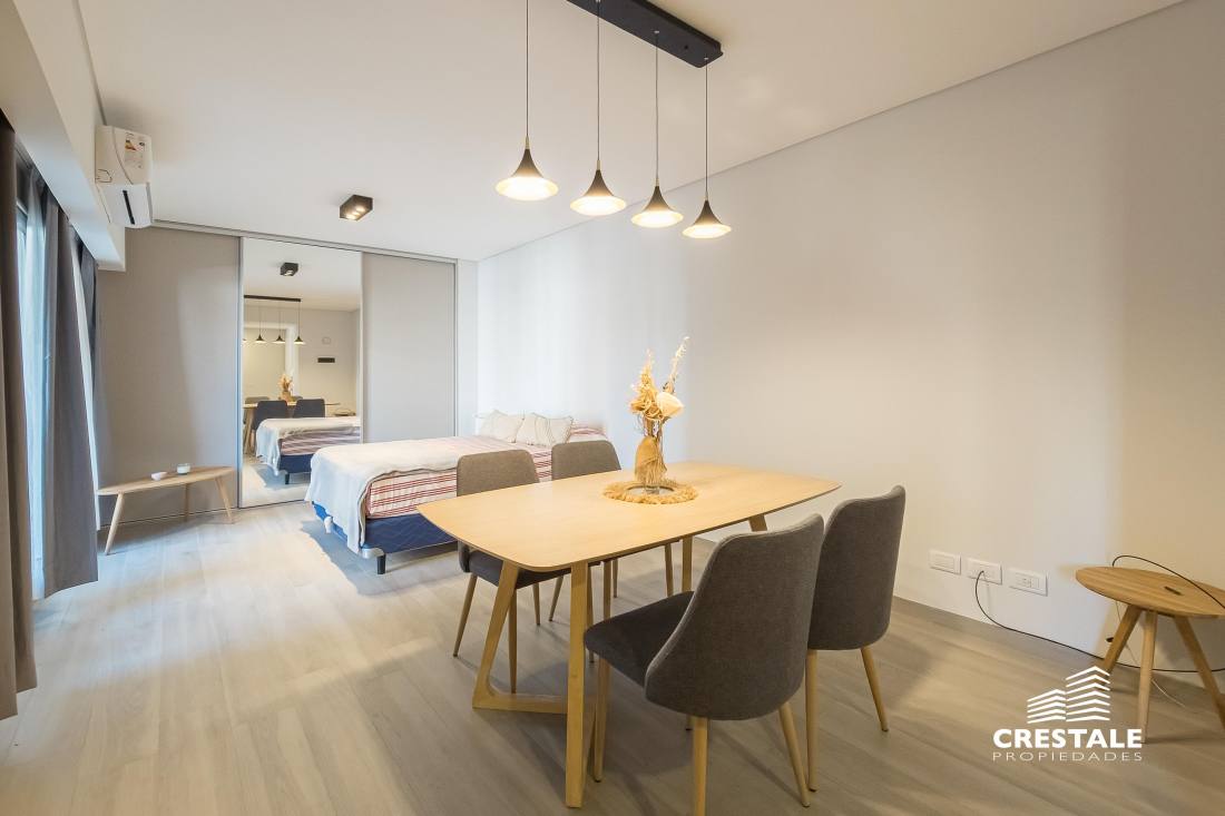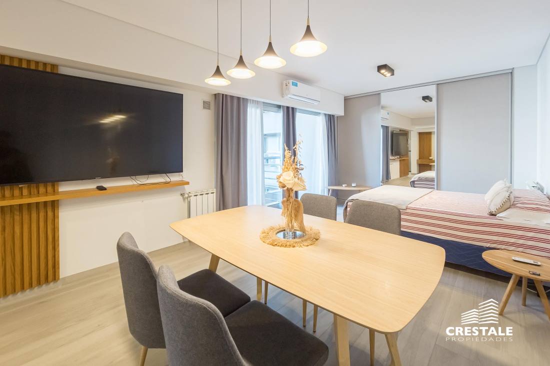 Venta / Permuta - Monoambiente con balcón y cochera en zona río - Parque España, Rosario Unidad monoambiente ubicada en piso 3 con orientación Sur. El ambiente principal presenta una distribución funcional y luminosa, con salida a balcón , permitiendo ventilación cruzada y conexión con el exterior. La unidad cuenta con cocina integrada, equipada con mesada, mobiliario y griferías de calidad, optimizando el uso del espacio. Dispone de baño completo y detalles constructivos acordes a un producto premium. Incluye cochera para auto y espacio de guardado para bicicletas, un diferencial relevante en la zona. Existe la posibilidad de adquirir la unidad amoblada, lo que la convierte en una alternativa ideal tanto para renta inmediata como para uso personal. Edificio de categoría a metros del Parque de España y del río Paraná. Ubicado sobre Italia 239, en el sector de Centro Río, una de las zonas más valoradas de Rosario por su cercanía al corredor costero, espacios verdes y al centro de la ciudad. El entorno combina acceso inmediato al río, al Parque de España, al Monumento a la Bandera y al microcentro, con una amplia oferta de comercios, gastronomía, instituciones educativas y servicios. El edificio se desarrolla en planta baja y 18 pisos, con unidades residenciales de diseño contemporáneo y amenities de alto nivel. Cuenta con ascensores Fujitec, grupo electrógeno que abastece tanto a sectores comunes como a las unidades, recepción y seguridad privada nocturna, garantizando confort y funcionamiento continuo. Código web: CAP7870525