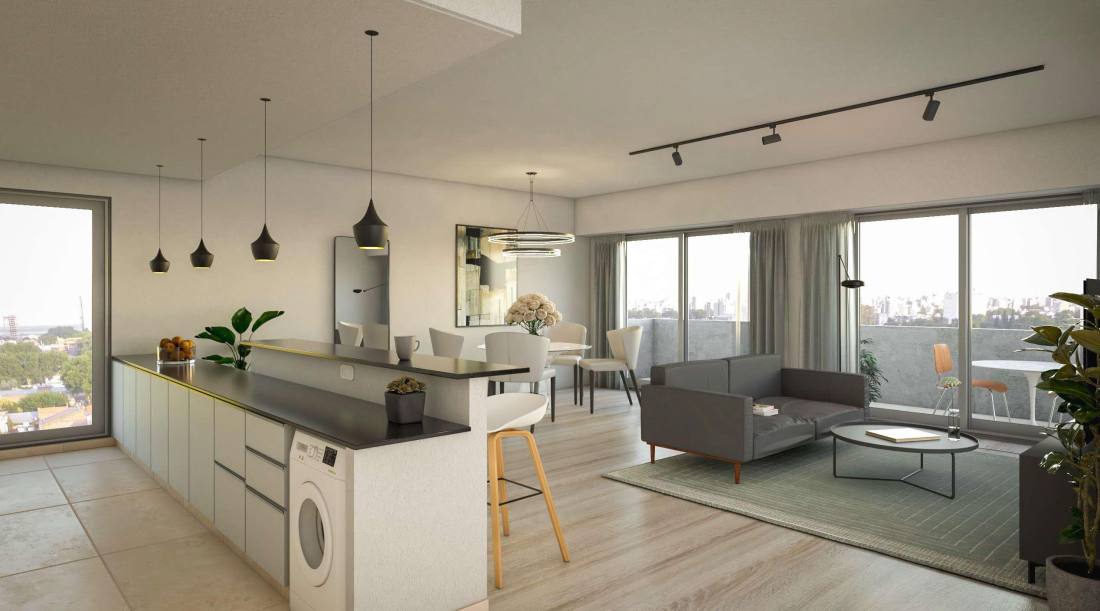 Estar comedor amplio con cocina americana y salida a balcón corrido al frente. Toilette de recepción. Dos habitaciones con placard y salida al voladizo sobre calle Junín. Baño completo asistiendo al sector íntimo.Este desarrollo se encuentra ubicado en una zona estratégica de la ciudad de Rosario, rodeado de importantes puntos de interés, como Alto Rosario Shopping, Puerto Norte, Parque Scalabrini Ortiz y Parque Sunchales. Además, su cercanía a Av. Alberdi brinda acceso rápido a una amplia variedad de servicios y comercios. Con sus 10 pisos, este proyecto ofrece una selección de unidades de uno, dos y tres dormitorios con una amplia variedad de espacios comunes y amenities. TERMINACIONES Construcción con ladrillos termoeficientes.; Puertas blindadas.; Dos ascensores de última generación con puertas de acero inoxidable en P.B.; Balcón de vidrios y hormigón.; Gas natural.; Calefacción por caldera.; Pisos PVC.; Aberturas con aluminio tipo Módena con vidrios DVH.; Placares empotrados completos.; Cocina con alacena y bajo mesada.; Amenities: Quincho y pileta. AMENITIES Quincho.; Pileta. FORMA DE PAGO Financiación. Contado.Código web: CBU51812 AP5403412