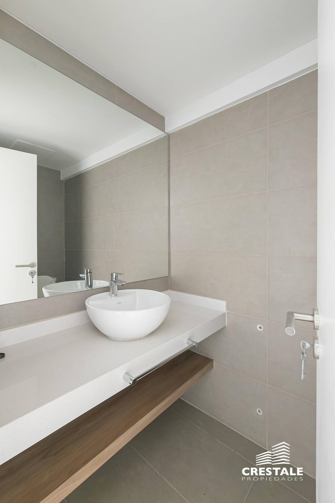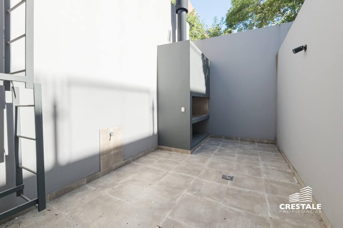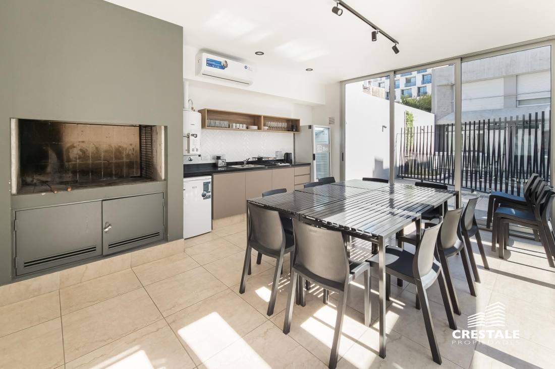 Departamento 2 dormitorios, desarrollado en dos plantas, ubicado en planta baja, con disposición contrafrente y orientación Sur, que combina privacidad, excelente calidad constructiva y espacios exteriores propios. En planta baja, la unidad presenta un amplio living comedor con salida directa a un patio de uso exclusivo, equipado con parrillero, ideal para reuniones y disfrute al aire libre. La cocina comedor diario se encuentra totalmente equipada, con mobiliario completo bajo mesada y alacenas, y muy buen espacio de guardado. Completa este nivel un toilette de recepción y lavadero independiente, aportando funcionalidad y orden. En planta alta, se desarrolla un espacio de escritorio ideal para home office o área de estudio. El dormitorio principal es amplio y luminoso, con vestidor, mientras que el segundo dormitorio cuenta con placard completo con interiores. El baño principal se destaca por su mesada de mármol, espejo sobre mesada, receptáculo de ducha y mampara de vidrio. La propiedad cuenta con pisos de porcelanato de alta calidad en estar comedor y cocina, y pisos de ingeniería en madera en dormitorios y circulaciones. Presenta revestimientos cerámicos en cocina, baños y lavadero, paredes y cielorrasos enlucidos en yeso con terminaciones en pintura látex acrílica.Las aberturas exteriores de aluminio anodizado natural con doble vidriado hermético (DVH) garantizan confort térmico y acústico. Dispone además de conductos para aire acondicionado ya instalados. Una propiedad de excelente nivel constructivo, con materiales de primera categoría, pensada para quienes buscan confort, diseño y funcionalidad, con el valor agregado de un espacio exterior propio en pleno centro de la ciudad. CARACTERÍSTICAS GENERALES Edificio de jerarquía, desarrollado en planta baja y 9 pisos, que combina diseño moderno, funcionalidad, confort y seguridad. Cuenta con cocheras y bauleras en subsuelo, brindando practicidad a los residentes. El acceso se jerarquiza mediante un hall principal en doble altura, aportando presencia, amplitud y una imagen de categoría. Entre sus espacios comunes ofrece dos quinchos totalmente equipados, con capacidad para 16 personas cada uno y posibilidad de integración, ideales para encuentros sociales. Ambos disponen de heladeras verticales, freezers, parrillero, mesas y sillas. En la terraza, el edificio cuenta con un solárium con duchas, pensado para el relax y el disfrute al aire libre. Ubicado en una zona estratégica del centro de Rosario, con cercanía a comercios, servicios, transporte público e instituciones, lo que lo convierte en una opción sólida tanto para vivienda como para inversión. TERMINACIONES Pisos de porcelanato en living comedor y cocina; pisos de ingeniería en dormitorios y circulaciones; aberturas de aluminio con DVH; placares con interiores completos; baños con artefactos en loza esmaltada blanca brillante; griferías de primera línea; cocina equipada con horno, anafe y caldera de primera marca; revestimientos cerámicos en sectores húmedos; paredes y cielorrasos en yeso con pintura látex acrílica. AMENITIES Quincho; Solárium / Rooftop; Bicicletero; Plaza verde FORMA DE PAGO Contado. Financiación.Código web: CBU69964 AP7739919