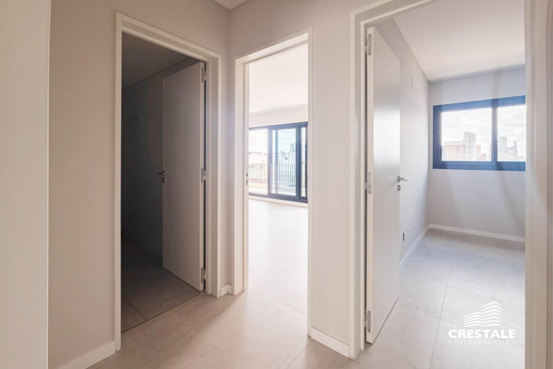 Estar comedor con cocina semi separada por barra desayunadora. Amplio balcón al frente sobre calle Mendoza. Toilette asistiendo al sector social. Dormitorio con placard y ventanal al Norte. Segunda habitación con guardarropas y ventilación al contra frente. Baño completo. Ventilación cruzada. Emprendimiento ubicación estratégicamente en la esquina de Mendoza y Callao, a metros de Bv. Oroño y con rápido acceso a los distintos puntos de la ciudad. La construcción contempla distintas tipologías y disposiciones entre las que se encuentran, una planta baja y 10 pisos, con unidades de 1, 2 y 3 dormitorios, un local comercial y cocheras en planta baja. En la azotea dispone de un SUM con parrillero y pileta con vista panorámica. FORMA DE PAGO Contado. Financiación. COCHERA Consultar. AMENITIES Pileta; SUM; Terraza; Parrillero TERMINACIONES DEPARTAMENTO 1 DORMITORIO:; Living-comedor: Puerta placa de ingreso en simple contacto compuesta por dos paneles encolados y prensados al bastidor de manera estabilizada, con relleno de nido de abeja celulósico. Caras laminadas en melanina texturada con terminaciones simil madera tipo roble natural, wengue, nogal, nevada. Manija doble balancín con roseta y bocallave.; Paramentos interiores terminados con yeso monocapa tipo alpress pintado de látex blanco.; Piso porcelanato placas grandes tipo 60x60 y/ó flotante símil madera vinílico con manta 7mm. primera calidad. Zócalos blanco nariz recta primera calidad.; Cielorraso aplicado de yeso sobre losa de hormigón terminado con látex blanco.; Aberturas: Aluminio anodizado natural ó negra marca Aluar tipo Línea A30New ó similar (doble vidrio hermético).; Preinstalación: AA, caja en pared, con alimentación eléctrica, desagüe de unidad interior y caño de cobre para unidad exterior. Pico de Gas para calefactor.; Cocina-lavaderos: Paramentos interiores terminados con yeso monocapa tipo alpress pintado de látex blanco. Sector húmedo paramentos revestidos con porcelanato o cerámico primera calidad.; Piso porcelanato placas grandes tipo 60x60 y/ó flotante símil madera vinílico con manta 7mm. primera calidad.; Zócalos blanco nariz recta primera calidad.; Cielorraso suspendido de placa de roca de yeso pintado de látex blanco.; Aberturas: Aluminio anodizado natural ó negra marca Aluar tipo Línea A30New ó similar (doble vidrio hermético).; Muebles de cocina bajo mesada y alacenas: cajones con correderas telescópicas y puertas, terminación MDF 18 mm. primera calidad.; Mesadas de silestone ó granito negro 2 cm con zócalo.; Bacha de acero inoxidable marca Johnson o similar.; Grifería monocomando marca Hidromet/FV o similar.; Artefactos: Horno para empotrar a gas Longvie o similar.; Anafe sobremesada a gas Longvie o similar 4 hornallas.; Espacio para instalación de purificador. (se entrega artefacto).; Calefón a gas 14l. tipo Longvie o similar primera calidad.; Baños: Piso porcelanato placas grandes tipo 60x60 y/ó flotante símil madera vinílico con manta 7mm. primera calidad.; Revestimiento de porcelanato o cerámico primera calidad.; Cielorraso suspendido de placa de roca de yeso pintado de látex blanco con buña perimetral.; Bacha y vanitory de colgar única pieza primera calidad. Espejo con bastidor.; Artefactos sanitarios: Inodoro y bidé Ferrum modelo Mónaco ó similar. Espacio para ducha.; Accesorios: toallero, portarollo, percheros y jabonera deprimera calidad.; Grifería monocomando Hidromet/FV modelo temple ó similar.; Puerta placa, caras laminadas en melanina texturada con terminaciones simil madera color blanca.; Dormitorios: Piso porcelanato placas grandes tipo 60x60 y/ó flotante símil madera vinílico con manta 7mm. primera calidad.; Zócalos blanco nariz recta primera calidad.; Paramentos interiores terminados con yeso monocapa tipo alpress pintado de látex blanco.; Cielorraso aplicado de yeso sobre losa pintado de látex blanco.; Aberturas: Aluminio anodizado natural ó negra marca Aluar tipo Línea A30New ó similar (doble vidrio hermético).; Puerta placa, caras laminadas en melanina texturada con terminaciones simil madera color blanca.; Placard con frentes corredizos con guía de aluminio y puertas en MDF 18mm laminado en melamina. Interior con cajonera y barral.; Preinstalación AA, caja en pared, con alimentación eléctrica, desagüe de unidad interior y caño de cobre para unidad exterior.; Balcones: Pisos de porcelanato o cerámico primera calidad.; Cielorrasos de hormigón visto con laca protectora.; Baranda metálica ó de vidrio reglamentaria.; Artefactos de iluminación. Nicho para unidad exterior AA con reja de perfiles WPC simil madera.; DEPARTAMENTO 2 DORMITORIOS:; Living-comedor: Puerta placa de ingreso en simple contacto compuesta por dos paneles encolados y prensados al bastidor de manera estabilizada, con relleno de nido de abeja celulósico. Caras laminadas en melanina texturada con terminaciones simil madera tipo roble natural, wengue, nogal, nevada. Manija doble balancín con roseta y bocallave.; Paramentos interiores terminados con yeso monocapa tipo alpress pintado de látex blanco.; Piso porcelanato placas grandes tipo 60x60 y/ó flotante símil madera vinílico con manta 7mm. primera calidad.; Zócalos blanco nariz recta primera calidad.; Cielorraso aplicado de yeso sobre losa de hormigón terminado con látex blanco.; Aberturas: Aluminio anodizado natural ó negra marca Aluar tipo Línea A30New ó similar (doble vidrio hermético).; Preinstalación: AA, caja en pared, con alimentación eléctrica, desagüe de unidad interior y caño de cobre para unidad exterior.; Pico de Gas para calefactor.; Cocina: Paramentos interiores terminados con yeso monocapa tipo alpress pintado de látex blanco. Sector húmedo paramentos revestidos con porcelanato o cerámico primera calidad.; Piso porcelanato placas grandes tipo 60x60 y/ó flotante símil madera vinílico con manta 7mm. primera calidad.; Zócalos blanco nariz recta primera calidad.; Ci