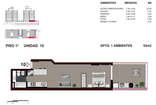 Departamento tipo loft, divisible, en primer piso con patio. Amplio desarrollo de cocina con doble bajo mesada. Baño completo. Patio exclusivo con bacha. TERMINACIONES Ingreso: . Control de acceso en puerta principal, ascensores y espacios comunes. Cámaras de vigilancia estratégicas. . Portón automatizado. . Iluminación inteligente en espacios comunes. . Ascensores de última generación, en acero inoxidable, espejos y mármol. Departamentos . Aberturas de aluminio y vidrio higrotérmico. . Puertas de seguridad. . Revestimientos en porcelanato y cerámicos. . Amoblamiento de cocina completo con alacenas y bajo mesadas. Mesadas de Silestone, granito o similar. . Caldera a gas. Calefacción por radiadores (provistos) . Anafe a gas. Horno eléctrico. Purificador. . Instalación para aire acondicionado, TV por cable, teléfono e internet. . Equipamiento completo de baños, con espejos y accesorios. Sanitarios y griferías. . Iluminación inteligente en baños. . Interiores de placares completos. Frente con espejos. . Espacio e instalación para lavarropas. . Balcones con mesada y grill eléctrico. Código del inmueble: CBU67684 AP7482533 Encontrá todas nuestras propiedades en: cccarlachiani. com. ar C.I. Mauro Carlachiani Mat. N° 280 *Toda la información y medidas provistas son aproximadas y deberán ratificarse con la documentación pertinente y no compromete contractualmente a nuestra empresa. Los gastos (Expensas, API, TGI, AGUAS, etc.) expresados, refieren a la última información recabada y deberán confirmarse. Fotografías no vinculantes ni contractuales.
