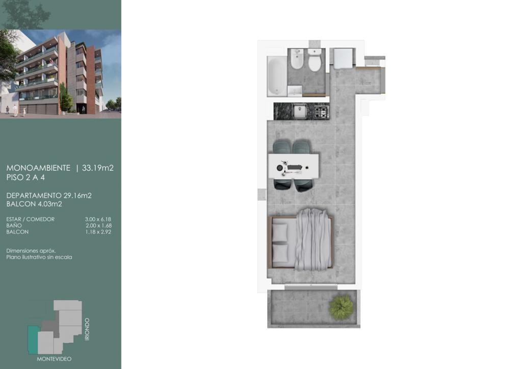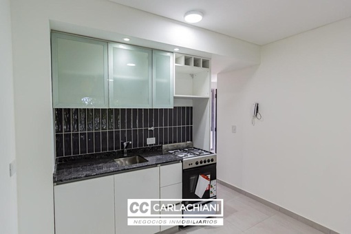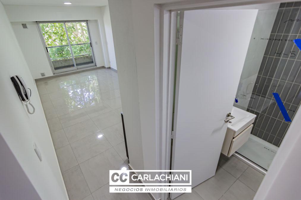 Departamento a estrenar de ambiente único ubicado en esquina de calles Montevideo e Iriondo, a pasos de Facultad UCA, Av. Pellegrini, zona comercial Echesortu, etc. De elegantes terminaciones posee ambiente único con cocina comedor integrado, baño completo con receptáculo y balcón a la calle. Ubicado sobre el segundo piso con vista hacia la calle Montevideo, este departamento posee una ventana lateral logrando maximizar la luz del mismo. Posee terraza de uso común con sector de parrilla y quincho. Características: * Pisos porcellanato pulido rectificado. * Aberturas de aluminio con DVH y persianas * Moderno amoblamiento de cocina con mesada de mármol y revestimiento de porcelanato. * Cocina equipada con aparato de cocina. * Baño con mampara de vidrio. * Paredes revestidas en yeso. Código del inmueble: CAP4679771 Encontrá todas nuestras propiedades en: cccarlachiani. com. ar C.I. Mauro Carlachiani Mat. N° 280 *Toda la información y medidas provistas son aproximadas y deberán ratificarse con la documentación pertinente y no compromete contractualmente a nuestra empresa. Los gastos (Expensas, API, TGI, AGUAS, etc.) expresados, refieren a la última información recabada y deberán confirmarse. Fotografías no vinculantes ni contractuales.