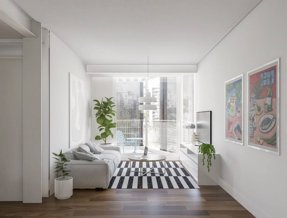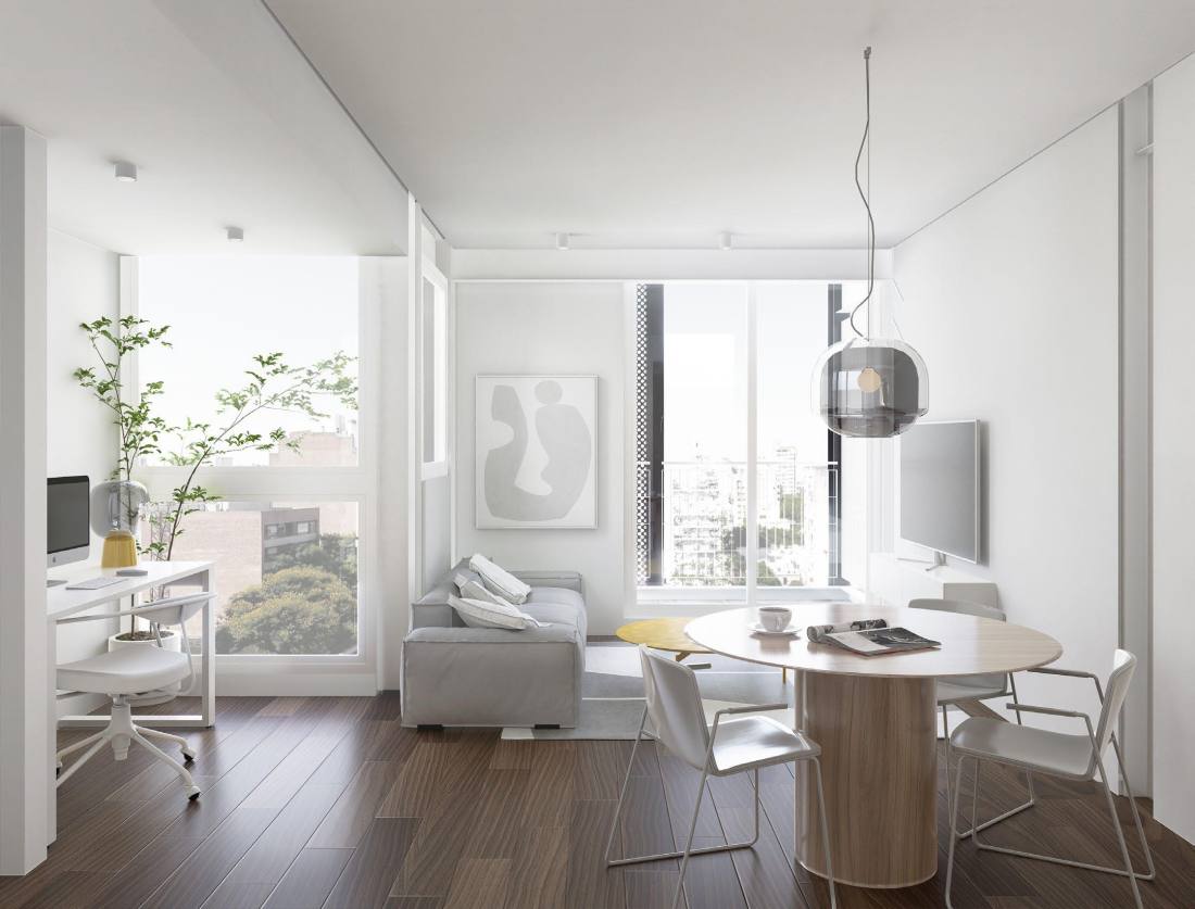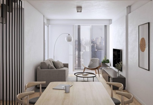 Amplio estar comedor con cocina integrada. Gran iluminación natural por balcón con salida al exterior. Baño completo y dormitorio con placard empotrado.Edificio ubicado a pocas cuadras de Bv. Oroño y Av. Pellegrini, excelente zona residencial a pocos minutos del centro de la ciudad. Excelente calidad constructiva. FORMA DE PAGO Financiación. Contado. COCHERA Opcional. AMENITIES Piscina; Solarium; Quincho; Parrillero TERMINACIONES - Acondicionamiento térmico: Calefacción a través de caldera BAXI, cañerías REHAU y radiadores (INCLUYE equipos) en todas todas las unidades salvo Amenities; Instalación de cañerías para equipos de aire acondicionado split (no incluye equipos); Muro de ladrillo de hormigón celular alta performance térmica y acústica; Cubiertas con aislación térmica 4cm alta densidad y hormigón dependiente alivianado con perlitas de poliestireno expandido; Pisos: Hall de Ingreso; Palieres: Porcelanato ILVA 60x60cm. o calidad similar; Espacios Comunes: Porcelanato Cerro Negro 60x60cm. o calidad similar; Exteriores: Pavimento intertrabado Pavitec o calidad similar; Ingreso cocheras: Loseta granítica Blangino; Solarium: Loseta atérmica o Deck WPC madera; 1 Dormitorio Baños: Porcelanato 60 x 120 Alberdi; Cocinas: Pisos Porcelanato 60x60 Cerro Negro; Dormitorios | Living: Pisos Hygge Flooring WPC madera (Noruega); 2/3 Dormitorio Baños: Porcelanatos 60 x 120 Portobello; Cocinas | Estar | Comedor: Pisos Hygge Flooring WPC madera (Noruega); Dormitorios: Pisos Hygge Flooring WPC madera (Noruega); Lavadero: Porcelanato Cerro Negro 60x60cm; Zócalos: 1. Zócalos de madera Blancos. Altura 10cm; 3. Zócalos cerámicos y/o graníticos exteriores y cocinas de 1 Dormitorio; - Revestimientos:1 Dormitorio: Cocinas; Lavaderos: Sobre mesada Cerámico Itagres 30x60 o calidad similar; Terminaciones con cantos de acero inoxidable; Baños: Cerámico Itagres 30x60 o calidad similar; Detalles en venecitas y terminaciones con cantos de acero inoxidable; 2/3 Dormitorios Cocinas | Lavaderos: Sobre mesada Porcelanato Itagres 30x60.; Terminaciones con cantos de acero inoxidable; Baños: Porcelanato Itagres 30x60 . Detalles en venecitas y terminaciones con cantos de acero inoxidable; - Carpintería metálica: Aberturas de aluminio Aluar A30New, anodizado natural VIDRIOS; DVH de alta prestación; Marcos de chapa DDN 18 para puertas placa con bisagras y sistema de cierre suave de acero inoxidable; Ingreso palier PB: Puerta pivotante marco acero inoxidable y vidrio de seguridad.; - Carpintería de madera: Puerta Placa Interiores con marco de chapa color blancas; Puerta Placa de Ingreso con marco de chapa color Wengue; - Placares y Muebles de Cocina: 1Dormitorio; Placares: Frentes en melamina color blanca con guías de aluminio; Equipamiento de cocina MDP en Melamina blanca Lisa, cantos de PVC 2mm y sistema de apertura perfil Gola aluminio anodizado natural; Sistema de cierre suave.; 2Dormitorios Placares: Frentes en melamina color blanca con guías de aluminio; Una hoja en Espejo; Equipamiento de cocina MDP en PVC blanco, sistema de apertura perfil Gola aluminio anodizado natural. Sistema de cierre suave; Cubiertero + Tacho; - Yesería: Enlucido de yeso en paramentos interiores.; Cielorrasos de yeso aplicados a la losa con buña perimetral y suspendidos en baños y cocinas.; - Artefactos: Bacha Cocina simple Johnson (1 Dormitorio); Bacha Cocina doble Johnson (2/3 Dormitorios); Lavadero: Simple Johnson; Baños: Bacha Ferrum Blanca Cuadrada o calidad similar.; Artefactos Roca línea Monaco o calidad similar.; Bañeras Ferrum o calidad similar. ; Platos de Ducha Five Saint; Horno y anafe a gas Longvie o calidad similar.; Campanas de cocina (solo en deptos. De 2/3 dormitorios); Griferías: 1Dormitorio Cocina: Monocomando Arizona; Baños: Monocomando Genebre (España) pared o calidad similar.;2/3 Dormitorio; Cocina: Monocomando Genebre (España) pared o calidad similar.; Lavadero: Monocomando FV Arizona cromo o calidad similar.; Baños: Monocomando Genebre (España) pared o calidad similar.; -Accesorios: Toallero, portarrollo, y perchas Arizona o calidad similar; Mampara laminadas.; - Marmolería: 1Dormitorio; Mesada de cocina: Granito Negro Boreal; Mesada de baño: Marmol Golfan Silver; 2/3Dormitorios·: Mesada de cocina: Silestone Blanco Norte; Mesada de Lavadero: Granito Negro Boreal; Mesada de baños: Marmol Golfan Silver; -Herrajes: En bronce platil.; - Ascensor / Iluminación: Ascensor de 13 paradas con cabina metálica y puerta automática en PB, de velocidad variable. Terminaciones en acero inoxidable piso de granito, espejo y cielorraso metálico con luces dicroled.; Instalación eléctrica línea Cambre Bauhaus; Instalación de artefactos en todos los espacios comunes (incluidos balcones y terrazas de uso privado).; - Varios Portón de ingreso cochera automatizado.; Previsión DTV.; Previsión de ubicación oculta de las unidades condensadoras de los equipos de aire acondicionado split.; Cortinas BlackOut roller (Solo en Piso 10°)Código web: CBU40496 AP4092177