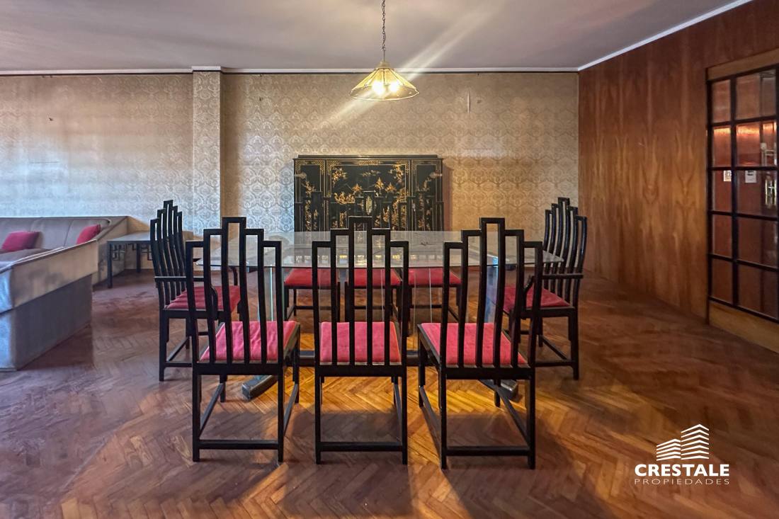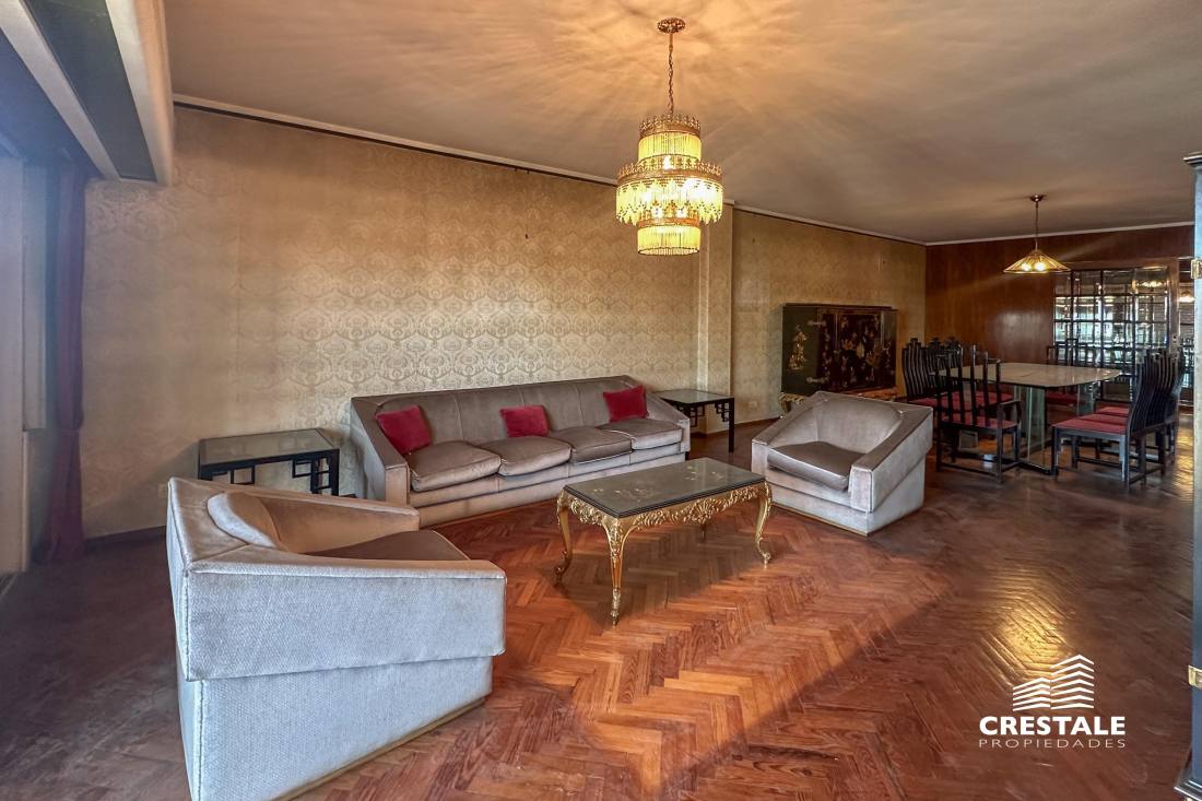 Departamento de categoría, piso exclusivo, con cuatro dormitorios más habitación de servicio y cochera, ubicado en la esquina de Av. Pellegrini y España, desarrollado por la reconocida firma Rinaldi.La unidad cuenta con doble ingreso: acceso principal hacia el living-comedor y acceso de servicio con ingreso directo a la cocina-comedor.Amplio living-comedor con salida a balcón cerrado al frente, con vistas despejadas sobre Av. Pellegrini.Cocina-comedor diario de generosas dimensiones, integrada a un espacio social adicional con parrilla, ideal para reuniones familiares. Sector de servicio compuesto por habitación, baño y lavadero independiente.En el área privada se desarrollan tres dormitorios asistidos por dos baños completos. La suite principal, ubicada al frente, cuenta con salida al balcón, vestidor, antebaño y baño completo.Sistema de calefacción central por conductos en toda la unidad.Código web: CAP7610916