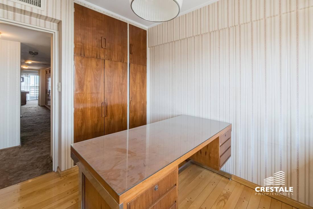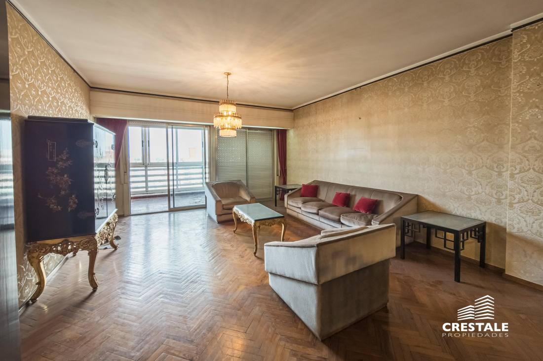 Departamento de categoría, piso exclusivo, con cuatro dormitorios más habitación de servicio y cochera, ubicado en la esquina de Av. Pellegrini y España, desarrollado por la reconocida firma Rinaldi.La unidad cuenta con doble ingreso: acceso principal hacia el living-comedor y acceso de servicio con ingreso directo a la cocina-comedor.Amplio living-comedor con salida a balcón cerrado al frente, con vistas despejadas sobre Av. Pellegrini.Cocina-comedor diario de generosas dimensiones, integrada a un espacio social adicional con parrilla, ideal para reuniones familiares. Sector de servicio compuesto por habitación, baño y lavadero independiente.En el área privada se desarrollan tres dormitorios asistidos por dos baños completos. La suite principal, ubicada al frente, cuenta con salida al balcón, vestidor, antebaño y baño completo.Sistema de calefacción central por conductos en toda la unidad. Código web: CAP7610916