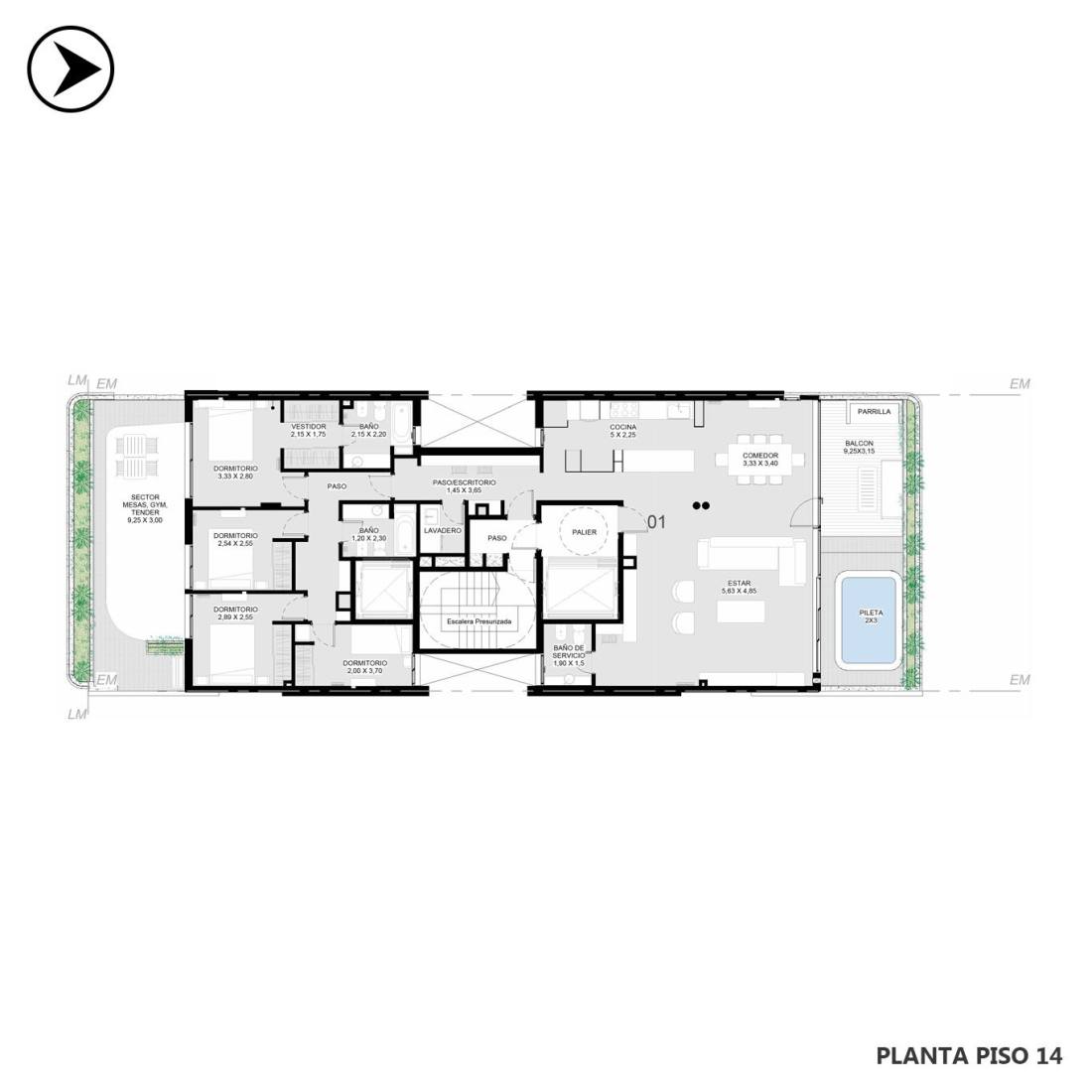 Departamento 3 dormitorios al frente sobre Av. Pellegrini. Cuenta con estar comedor integrado a cocina, toilette de cortesía, baño completo y balcón corrido al frente. La disposición interna distribuye los ambientes hacia el frente y contrafrente, permitiendo buena ventilación cruzada. Suite principal con vestidor y salida al voladizo. Segunda habitación asistida por baño completo. Tercer dormitorio al contra frente. Ubicado sobre Av. Pellegrini, una de las principales arterias de Rosario, el edificio ofrece acceso inmediato a la Plaza López, el Parque Urquiza, el Instituto Politécnico Superior, la UCEL y la UTN. En una zona caracterizada por su diversidad gastronómica, comercial y recreativa, el desarrollo se posiciona en el corazón de un entorno urbano consolidado, ideal para quienes buscan conexión con el dinamismo de la ciudad sin resignar calidad de vida. Torre de PB + 14 pisos, con tres niveles de cocheras (PB y dos subsuelos), unidades de 1 a 4 dormitorios, y rooftop exclusivo. TERMINACIONES Revestimientos y pisos de primera línea; doble muro con aislación térmica; aberturas de aluminio de alta prestación con DVH; puertas de ingreso con cerradura smart bluetooth; interiores de puertas con WPC de alta calidad; mobiliario de cocina en MDF laminado con zócalos de acero inoxidable, iluminación integrada y mesadas de diseño; horno y anafe separados; bacha de acero inoxidable con grifería de primera marca; placares completos con interiores terminados; preinstalación de aire acondicionado en todos los ambientes; calefacción por radiadores (en unidades de 3 y 4 dormitorios); sanitarios y griferías de primera marca; balcones con vegetación y parrillero (en unidades seleccionadas); sistema de seguridad con cámaras, botones de pánico, sensores y pantalla táctil inteligente AMENITIES Piscina en terraza; quincho semicubierto; fogonero; solárium; gimnasio equipado; coworking; Zoom Kids; spa; living exterior; bicicleteros; bauleras; rooftop exclusivo FORMA DE PAGO Financiación. Contado. COCHERA OpcionalCódigo web: CBU64152 AP7757469