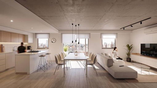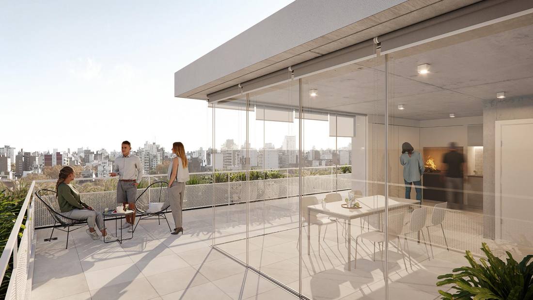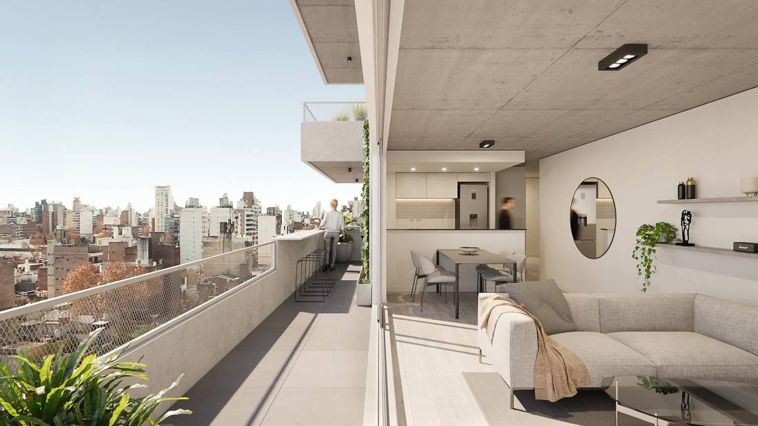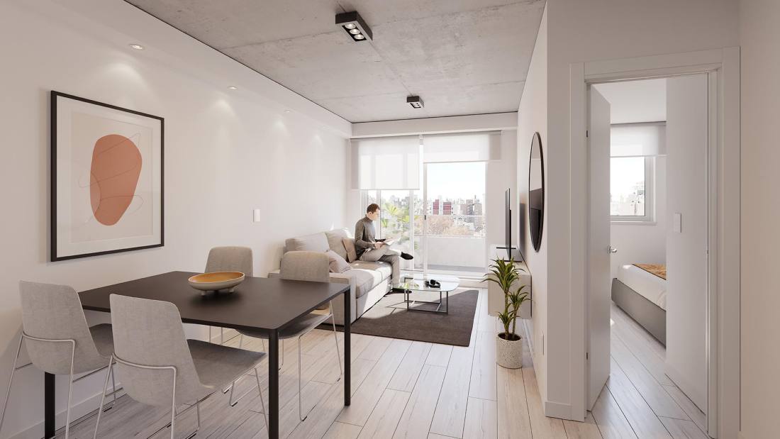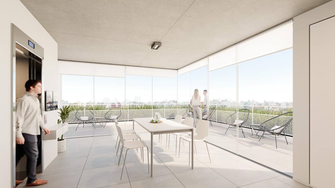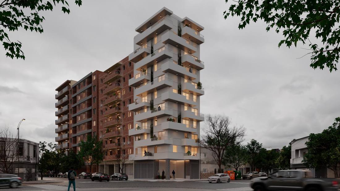 Estar comedor con cocina integrada y balcón corrido al frente. Dormitorio con placard y salida al voladizo sobre Corrientes. Baño completo. Edificio de 10 pisos ubicado en la esquina de Corrientes y Riobamba en el corazón del Barrio Abasto, uno de los sectores de la ciudad de mayor vegetación y con cercanía de pocas cuadras a varios parques de Rosario. La ubicación del proyecto articula en perfecto equilibrio la tranquilidad de la vida de barrio sin perder la conexión al centro de la ciudad, al movimiento y al dinamismo. El proyecto cuenta con unidades de 1 y 2 dormitorios y amplios pisos exclusivos de 3 dormitorios, cuentan con extensos balcones y ventilación cruzada. Se trata de un edificio cómodo, diseñado para ser funcional y para ser habitado por personas que busquen disfrutar de estar “en casa” y que valoren una buena distribución de los espacios y el contacto con el exterior tanto en visuales como en espacios de disfrute: sus amplios balcones y el quincho de uso común en la azotea. FORMA DE PAGO Financiación. Contado. COCHERA Opcional AMENITIES Terraza; Quincho; Parrillero; Solarium TERMINACIONES MUROS: Terminación interior: yeso monocapa.; Pintura interior: Pintura blanca látex, primera marca.; ABERTURAS: Aberturas de aluminio de alta prestación, con vidrio DVH.; Puertas interiores unidades: puerta placa con marco de chapa.; AMOBLAMIENTOS: Amoblamiento de cocina bajo mesada y alacenas de melamina.; Frentes de placard de melamina (no incluye interiores).; ARTEFACTOS Y GRIFERÍAS: Cocinas: Cocina a gas.; Sistema de extracción humo.; Calefón en unidades de 1 y 2 dormitorios.; Caldera en unidades de 3 dormitorios.; Bacha de acero inoxidable Johnson.; Grifería Monocomando.; Baños: Griferías Monocomando.; Artefactos sanitarios primera línea.; Bañera o ducha primera línea.; Juego de accesorios completo.; Pisos: Baños/Cocina: porcelanato.; Estar/Living/Habitaciones: piso melaminico/vinílico.; Balcones/Exteriores: cerámico.; Revestimientos.; Baños: porcellanato.; Marmolería: Cocina: granito gris mara o similar.; Baños: mármol o similar.; INSTALACIONES: Acondicionamiento térmico: Preinstalación para equipos de aire acondicionado split (no incluye equipos).; Unidades de 3 dormitorios: Instalación de cañerías para calefacción a través de caldera y radiadores (no incluye radiadores).; Instalación de gas en todas las unidades: ESPACIOS COMUNES: Cocheras en PB.; Quincho equipado con parrilla y baño.; Vegetación decorativa.; Luminarias.; Señalética.; ALHAJAMIENTO: Ingreso con portero. Buzon para departamentos.; Mobiliario para quincho (juego de mesa y sillas para 8 personas, sillones exteriores)Código web: CBU46369 AP7025462