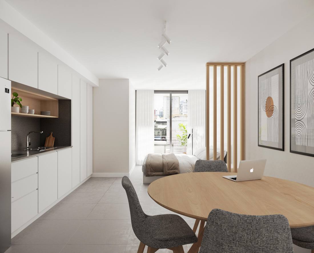 Departamento 2 dormitorios con cocina integrada y luminoso balcón al frente. Dos habitaciones con placard y luminoso ventanal sobre calle Roca. Baño completo y toilette asistiendo al sector social.Ubicado en calle Presidente Roca 300, en pleno centro de Rosario, a pocas cuadras del río Paraná y de Bv. Oroño. El edificio ofrece una localización privilegiada, cercana a los principales centros educativos, comerciales, gastronómicos y culturales de la ciudad. El desarrollo combina diseño contemporáneo, funcionalidad y confort. Edificio de planta baja y 9 pisos con unidades de 1, 2 y 3 dormitorios, pisos exclusivos y monoambientes. Cuenta con cocheras, dos ascensores de última generación y amenities de uso común en terraza. TERMINACIONES Pisos de porcelanato en estar y cerámicos en cocinas y baños; Revestimientos de porcelanato en baños y cocinas; Dormitorios con pisos flotantes o porcelanatos; Aberturas de aluminio línea Aluar Módena con cortinas de enrollar en dormitorios; Puertas interiores placa y puertas de ingreso con cerradura de seguridad; Placares con interiores terminados y frentes corredizos; Cocinas con mesada de granito, pileta de acero inoxidable, anafe y horno a gas; Grifería de alta calidad con cierre cerámico; Caldera dual y radiadores (en unidades de 2 y 3 dormitorios); Paredes y cielorrasos en yeso con buñas perimetrales; Preinstalación para equipos de aire acondicionado tipo split AMENITIES Solárium; Parrilleros en terraza; Duchadores; Palieres con sensores de movimiento; Hall de ingreso con control de acceso y vigilancia monitoreada; Portón automatizado para cocheras FORMA DE PAGO Financiación. Contado. COCHERA Opcional.Código web: CBU67598 AP7474365