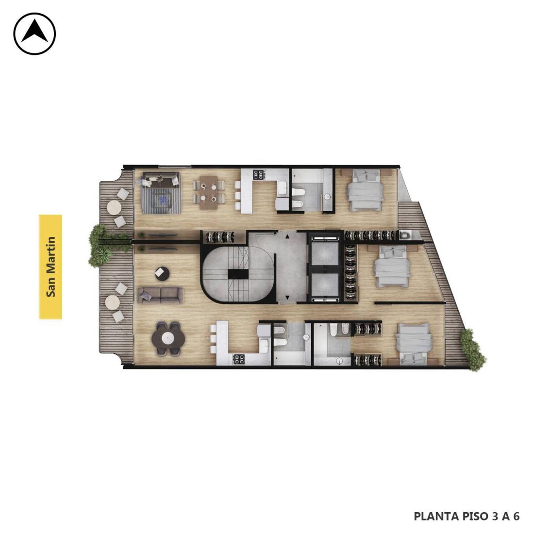 Departamento 3 dormitorios dispuesto en piso exclusivo. Ingreso a un generoso estar comedor con cocina integrada, que se conecta a un amplio balcón corrido al frente sobre calle San Martín con espacio de estar y comedor exterior. Cuenta con tres dormitorios, todos con placares y excelente iluminación; uno de ellos con salida a un segundo balcón al contrafrente. Dispone de dos baños completos, uno con bañera y otro con ducha. Amplia superficie, ventilación cruzada y distribución funcional.En una ubicación única con vista al Río Paraná se asoma este nuevo desarrollo de excelente calidad constructiva y diseño arquitectónico. Una innovadora propuesta inmersa en una zona residencial rodeada de tranquilidad y, al mismo tiempo, con cómodos y rápidos acceso al Parque España, el Monumento y la costanera. Contará con amenidades priorizando los espacios de encuentro y la comodidad de sus usuarios. Se destaca la incorporación de amplios balcones salientes que se vuelven protagonistas del proyecto. La torre contará con 9 pisos y unidades de 1, 2 y 3 dormitorios, con espacios amplios, prácticas distribuciones y detalles de calidad premium. AMENITIES Piscina; Solárium; SUM; Gimnasio totalmente equipado; Parrillero; Cocheras; Espacio para bicicletas TERMINACIONES Pisos de porcelanato símil madera; Zócalos de PVC; Caldera dual con radiadores instalados; Equipos de aire acondicionado en todos los ambientes; Aberturas con DVH; Muebles de cocina y placares completos; Horno y anafe; Purificador extensible en acero inoxidable; Mesadas en mármol o Silestone con alzada del mismo tono; Baños con extractor y accesorios incluidos; Cerramientos con persianas eléctricas COCHERA Opcional FORMA DE PAGO Financiación. Contado.Código web: CBU63254 AP7609421