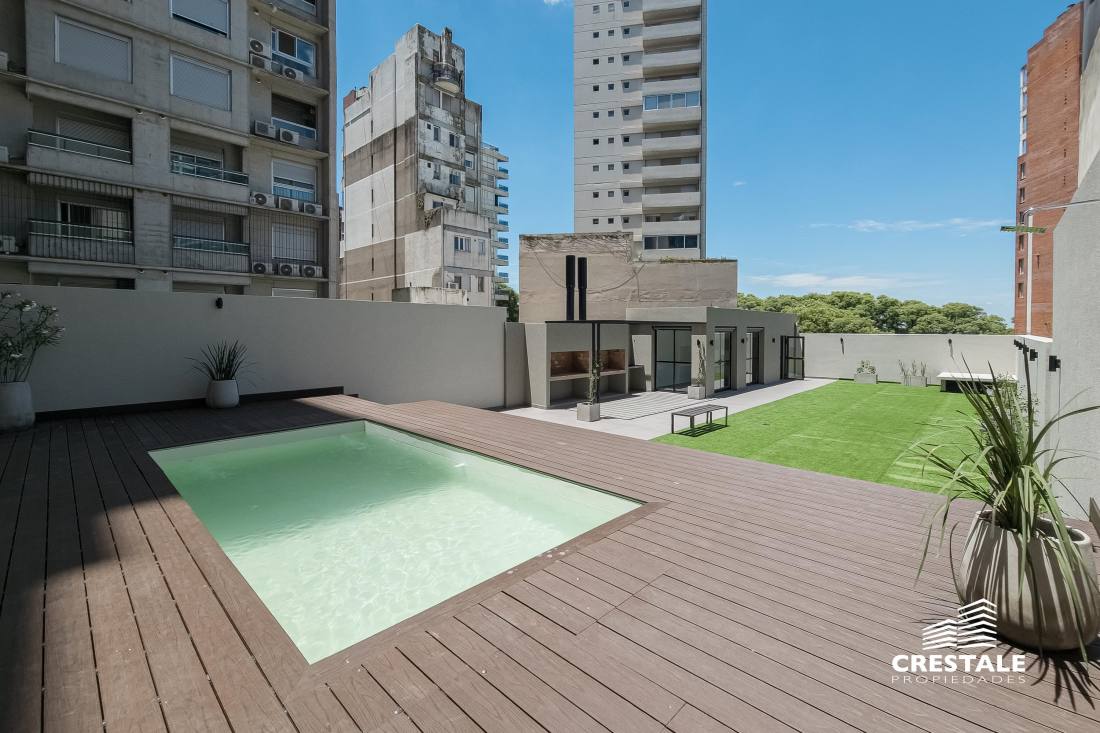 Excelente unidad al frente sobre calle San Martin. Amplio living comedor con cocina separada y salida a un balcón terraza al frente. Dormitorio principal en suite con vestidor y un segundo dormitorio con placard incorporado y espacio para escritorio asistido por un baño completo. Segundo balcón al contrafrente con acceso desde los dormitorios. Lavadero independiente. Inmejorable ubicación. A metros del parque/río. Cercano a peatonal Córdoba, uno de los corredores mas importantes de Rosario y a una cuadra de Av. Belgrano. Departamentos distribuidos en semipisos con ventilación cruzada. Excelente calidad constructiva. Amenities en segundo piso. FORMA DE PAGO Contado. Financiación. COCHERA Opcional AMENITIES Quincho; Patio con espejo de agua; Parrilleros; Piscina; Solarium TERMINACIONES Aberturas exteriores en aluminio línea MODENA con DVH; Puertas interiores placas; Frentes e interiores de placard en melamina; Ascensor de primera marca con puertas automáticas; Artefactos sanitarios Ferrum; Grifería FV; inodoro con mochila de doble descarga; Bacha de acero inoxidable; Horno eléctrico en balcones; Caldera dual; Instalación para calefacción por radiadores; Mesada de granito; Muebles bajo mesada y alacenas de primera calidad; Pisos de porcelanato; Revestimientos cerámicos de primera marca; Zócalos en porcelanatoCódigo web: CBU22954 AP2190108
