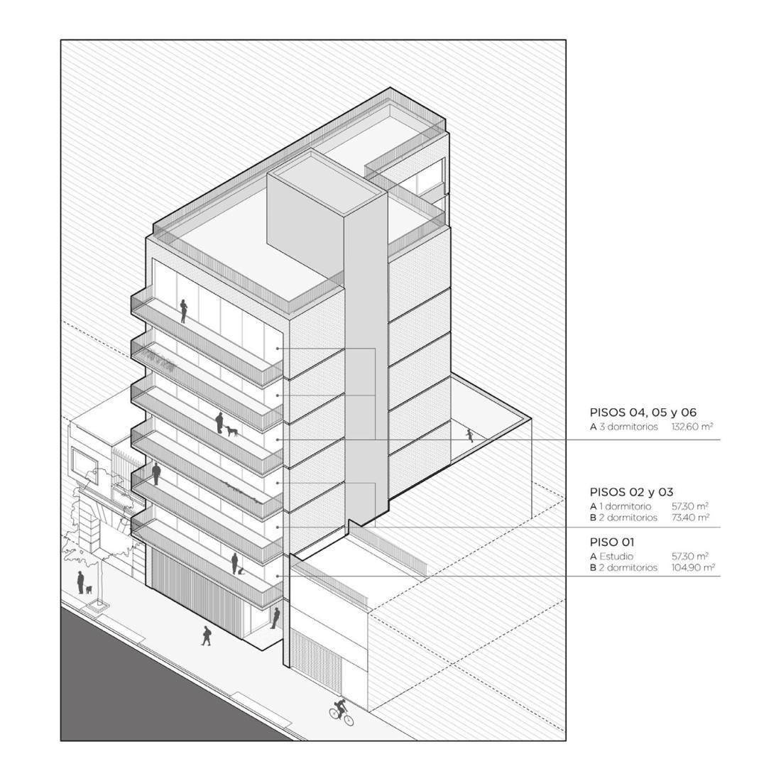 Amplio estar comedor con cocina incorporada orientada al Norte. Acceso a patio de uso exclusivo. Dos dormitorios con placard y salida al exterior. Baño completo.El edificio se ubica sobre calle Santiago, próximo a la intersección con Santa Fe, en un sector de la ciudad de marcado perfil residencial. Por ser el barrio aledaño a pichincha, pero permitiéndose construir 19m de altura, dio como resultado un acelerado proceso de transformación, en el que se sustituyen casas de vivienda unifamiliar por edificios de vivienda colectiva. El proyecto se concibe como una caja de ladrillos grises que se perfora con la horizontalidad de las losas en todo su perímetro, y se extienden al este, para dar lugar a amplios balcones que actúan como espacio intermedio entre la vivienda y la ciudad. El núcleo de circulación vertical divide el terreno prácticamente en dos mitades: sobre calle Santiago al este, generamos un espacio diáfano que ocupa todo el ancho del terreno y se extiende hacia la calle con el balcón. Al materializar la fachada, con grandes paños vidriados, logramos una continuidad entre interior y exterior, el espacio interior se expande y se difumina el límite con el afuera. La cara oeste al contrafrente se materializa en mampostería al igual que las medianeras, produciendo un contraste entre el carácter permeable y liviano de la fachada, y el resto de la caja compacta y pesada. Al ubicar el patio mínimo en la esquina noroeste, generamos una quinta fachada al norte, que al receder el vidrio y subir el antepecho genera un cantero que te protege del sol. A cada unidad se accede a través de un palier de 2,60mx1,60m. Dentro de cada departamento nos encontramos con un espacioso living comedor que cuenta con terminaciones de yeso en paredes, piso flotante símil madera, losa vista de hormigón armado, y aberturas de aluminio de alta prestación con doble vidriado hermético de 2,50m de alto, por las cuales se accede al balcón. El mismo está terminado con piso de porcellanato, mientras que continua la losa vista de hormigón armado desde el interior. Los balcones cuentan con barandas varilladas de herrería. Cada unidad consta de una cocina integrada totalmente equipada con muebles de guardado, alacena y bajo mesada de melamina, mesadas de granito, grifería FV o similar, horno y anafe a gas por separado. Cada lavadero contiene cielorraso suspendido de yeso, mesada de granito con bacha y conexión para lavarropas. El distribuidor que comunica el sector social con el íntimo es de piso flotante símil madera. Los baños de cada unidad son completos (en suite si el departamento es de tres dormitorios), con porcellanato en pisos y revestimientos, cielorraso suspendido de yeso, bañeras, artefactos Ferrum o similar, mesadas de mármol \y grifería FV o similar. Los dormitorios se terminan con piso flotante símil madera, cielorraso aplicado de yeso, terminación de yeso en paredes, aberturas corredizas de aluminio de alta prestación con doble vidriado hermético. Los dormitorios siempre cuentan con ventilación natural hacia el patio interno o hacia el frente. Las unidades se entregan con equipo de caldera dual para calefacción y agua caliente, y pre instalación de aire acondicionado. FORMA DE PAGO Financiación. Contado. COCHERA Si. Opcional.Código web: CBU40967 AP4137988