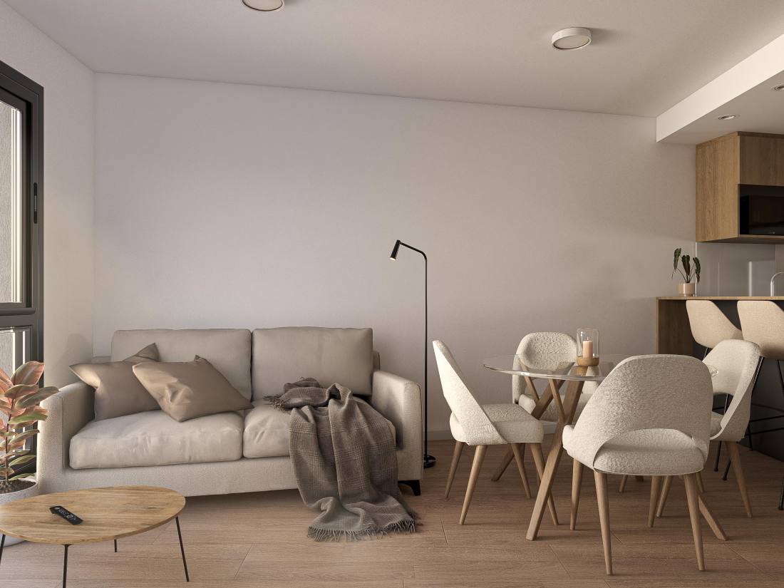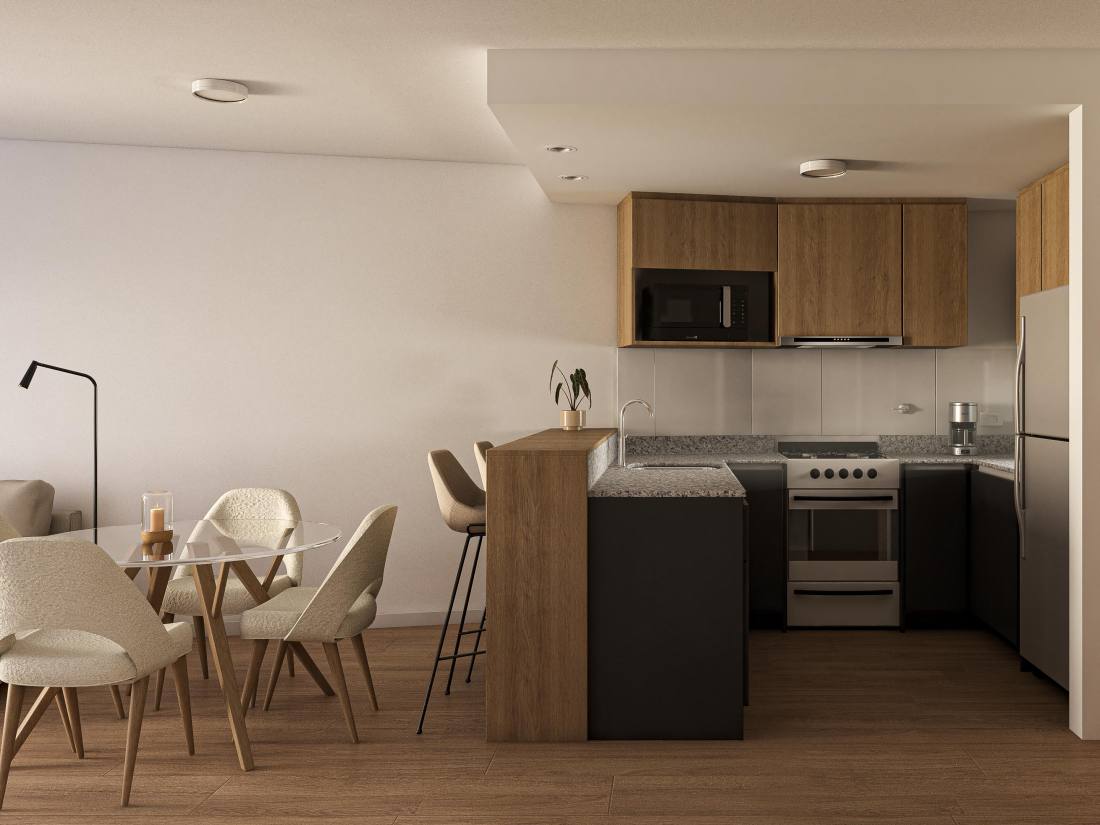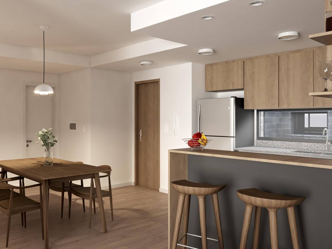 Estar comedor con cocina semi integrada con barra desayunadora y salida a balcón corrido al contra frente. Segunda habitación con acceso al voladizo Este asistida por baño completo.Emprendimiento ubicado en pleno centro de la ciudad de Rosario. Inmejorables prestaciones de servicios, a metros de la city rosarina y los principales paseos comerciales y gastronómicos. Cercanía con el río e importantes centros educativos. El proyecto comprende PB más 6 pisos: unidades de un dormitorio, dos dormitorios y dos dormitorios con Terraza exclusiva. Terraza de uso común. AMENITIES Terraza.; Quincho.; Parrillero.; Solarium. COCHERA Opcional. FORMA DE PAGO Financiación. Contado. TERMINACIONES Instalación de cañerías para equipos de aire acondicionado split (no incluye equipos).; ARTEFACTOS: Cocina, Calefón, Griferías FV o calidad similar.; Artefactos de baño marca Ferrum o calidad similar.; ESPECIFICACIONES TÉCNICAS: Terminaciones de yeso en paredes y techo, hormigón visto en techo.; Aberturas corredizas de aluminio de alta prestación con doble vidriado hermético (DVH).; Cocina equipada con muebles de guardado, alacena y bajo mesada.; Espacios living comedor con terminaciones de porcelanato simil madera.; Dormitorios con terminaciones de porcelanato simil madera, cielorraso aplicado de yeso, terminación de yeso en paredes.; Baño completo con porcelanato en pisos, cielorraso suspendido de yeso, ducha, artefactos Ferrum o calidad similar, grifería FV o calidad similar.Código web: CBU49190 AP4970543