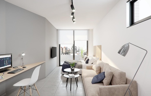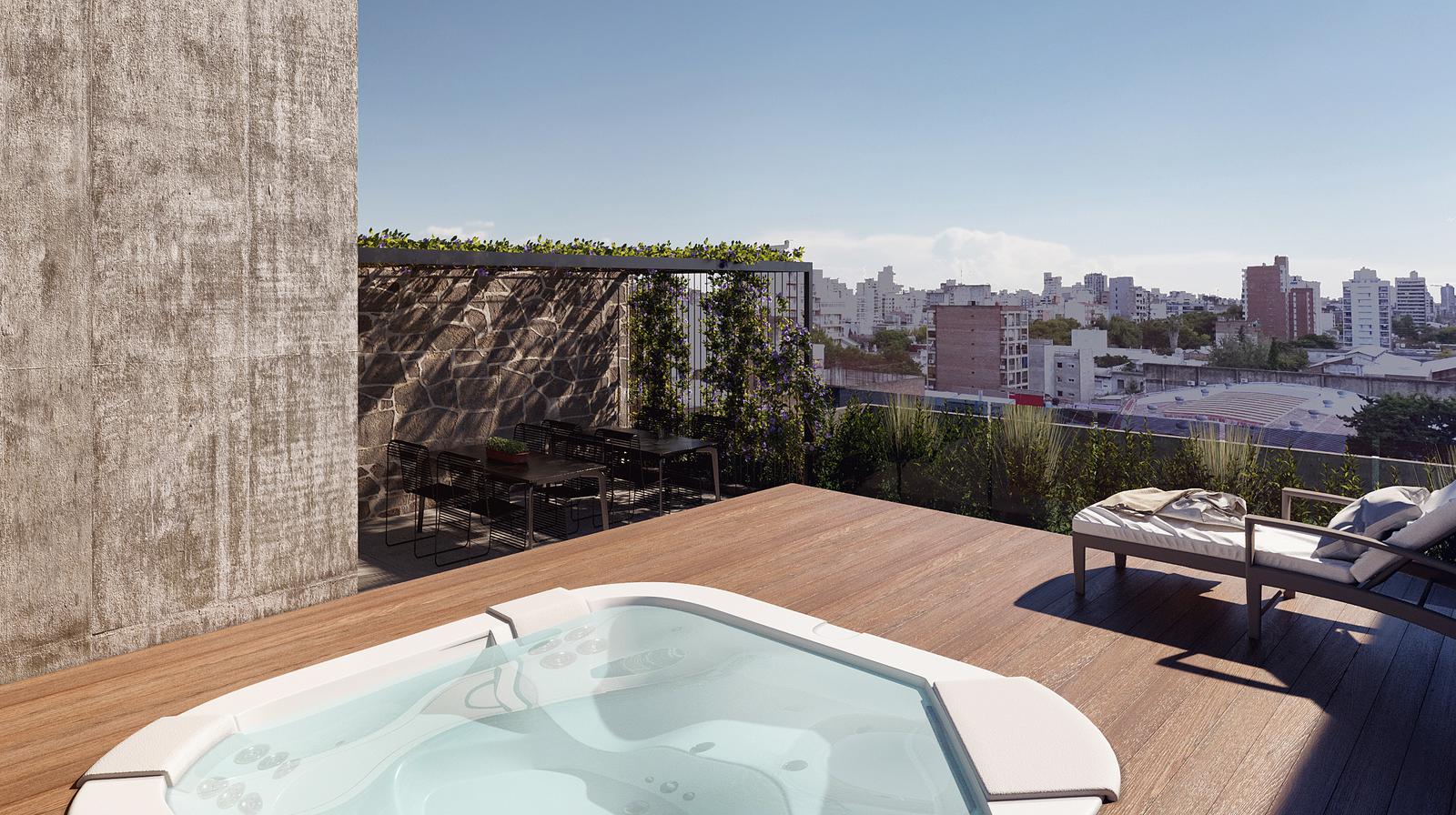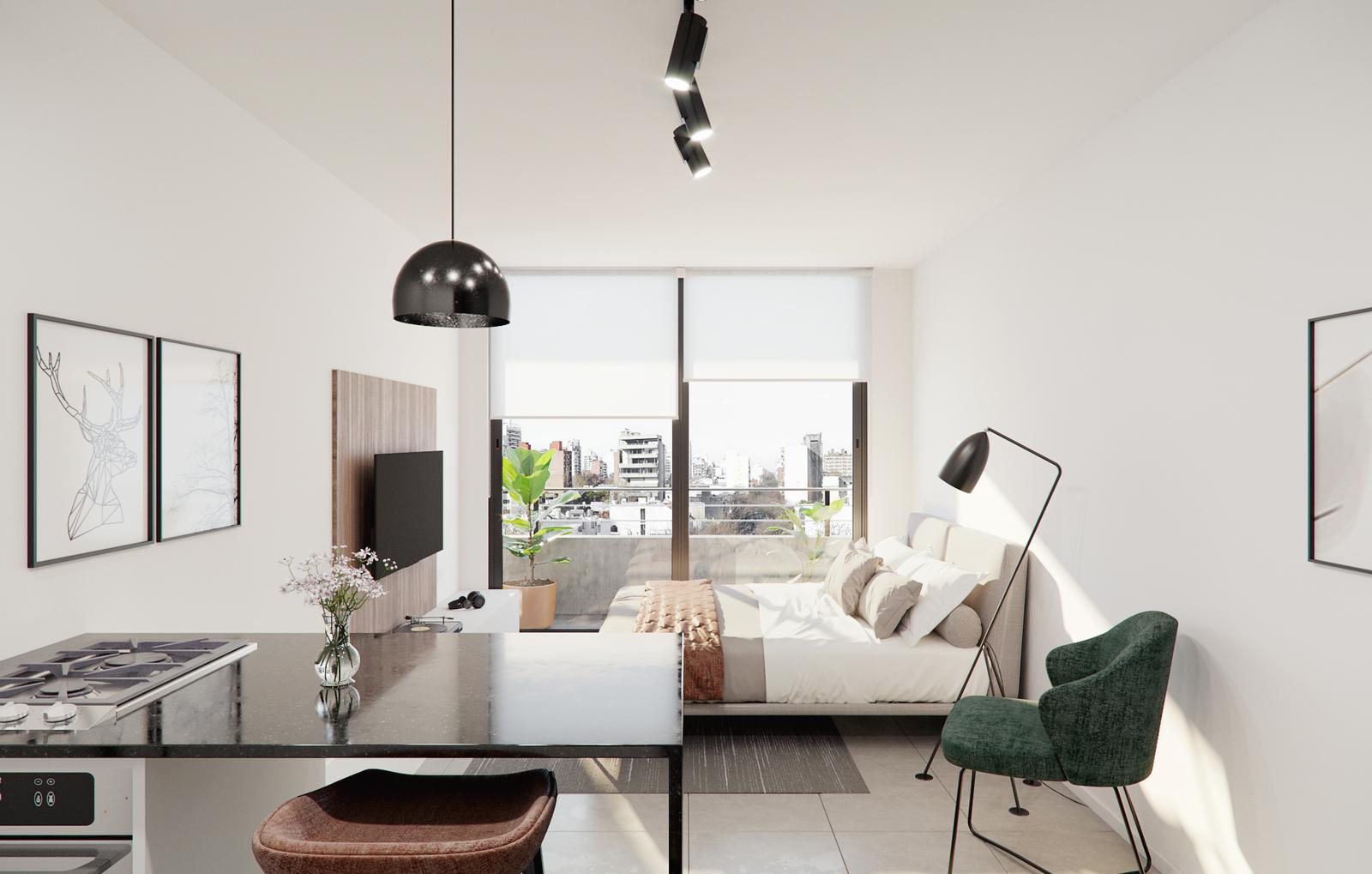 Monoambiente. Compuesto por un ambiente único y cocina semi separada por una barra. Balcón interno. Baño completo. GENERALIDADES Dos torres, a metros de Av. Pellegrini, con todas las opciones. Un edificio concebido para ser funcional, clásico y moderno. Con unidades monoambientes, 1 y 2 dormitorios. Cocheras en subsuelo y local particular en planta baja todas las unidades. La primera torre está compuesta por departamentos de 2 dormitorios, monoambientes y 1 dormitorio. La segunda torre ofrece unidades de 1 dormitorio y monoambientes. Solárium, jacuzzi, gimnasio, laundry, sala de estudio y sala de esparcimiento, son algunas de las principales amenities que se destacan. UBICACIÓN A metros de Av. Pellegrini, uno de los corredores más importantes de la ciudad de Rosario. Cercano a locales comerciales, gastronomicos y de espacios verdes. TERMINACIONES -Aberturas de aluminio con DVH (cierta aislación térmica y acústica). -Persianas en dormitorios -Preinstalación de aire acondicionado -Muebles de cocina completos -Placares y espacios de guardado confrente e interiores -Puerta de ingreso de seguridad. -Griferías y artefactos de primera calidad. -Pisos de porcellanato. -En los dormitorios, pisos simil madera. -Acceso con doble puerta y llave magnética. -Sistema de control en accesos por cámaras. -Cocheras con portón exclusivo. -Piso de hormigón llaneado. -Rampa de ingreso con portón automático (apertura manual en caso de cortes de energía eléctrica). -Cocheras techadas. AMENITIES -Jacuzzi. -Parrilla. -Gimnasio. -Solárium. -Quinchos. -Laundry. -Bicicletero. -Duchadores. -Sala de estudio. FECHA DE ENTREGA Enero 2026 FORMA DE PAGO Contado. Financiación: Entrega 50% + 50% en 6 cuotas en pesos ajustables al CAC FOTOS ILUSTRATIVAS DEL PROYECTO