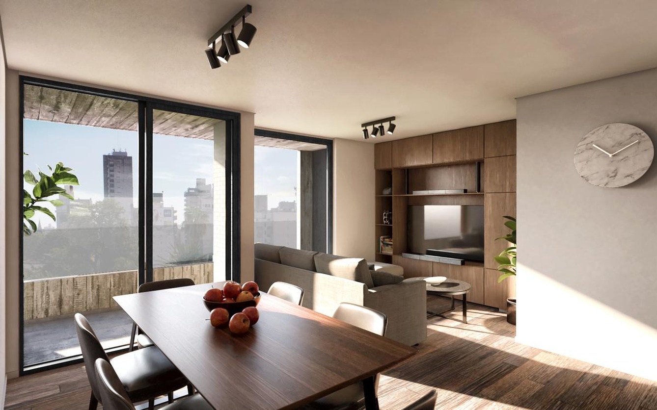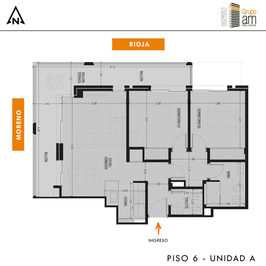 Unidad de dos dormitorios en esquina de Moreno y Rioja. Amplio living comedor con cocina semiseparada y salida a un balcón en "L" sobre calle Moreno y sobre calle Rioja. Dormitorios con placard incorporado. Baño completo y toilette de recepción. EDIFICIO El edificio cuenta con 8 pisos, los cuales tienen unidades semipisos de 2 dormitorios y opciones de 2 dormitorios con un espacio “comodín”. Las diferentes unidades van desde los 77 a los 101 m2 de superficie total. En planta baja posee un local comercial y cocheras con acceso directo desde la calle. ZONA Está ubicado en una zona estratégica del centro de la ciudad, cerca de los centros comerciales y las instituciones educativas más importantes. En la esquina de Moreno y Rioja, a dos cuadras de Bv Oroño, a una cuadra del Paseo del Siglo y frente a una plaza verde que otorga un perímetro libre para disfrutar de vistas abiertas desde todas sus unidades. A pocos metros se encuentran la Facultad de Derecho y la histórica y clásica plaza San Martín, pulmón natural por excelencia del centro rosarino. TERMINACIONES - Ascensor de calidad premium - Acceso con doble puerta y llave magnética - Cocheras con portón exclusivo - Sistema de seguridad integrado de cámaras - Control electrónico de accesos en Ingreso y Amenidades AMENITIES Terraza, solárium con duchadores, quincho, parrilla con barra y bicicletero son algunas de las amenidades principales. FECHA DE ENTREGA Diciembre 2026 FORMA DE PAGO Contado. Financiación. COCHERA Incluida en el valor.
