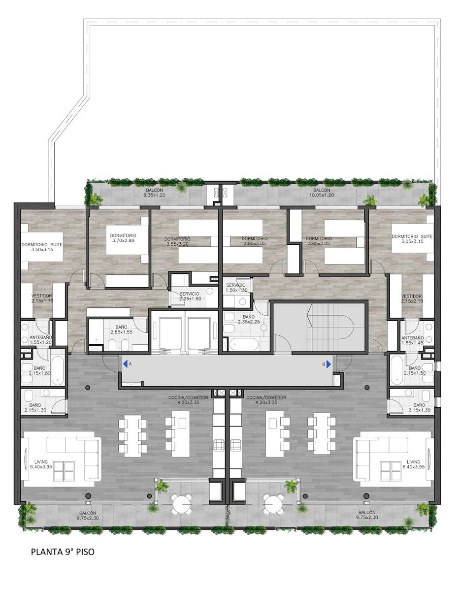 Exclusivo semipiso de 3 dormitorios, ubicado al frente, con excelente amplitud, luminosidad y privacidad. El ingreso conduce a un gran living-comedor, con cocina integrada de generosas dimensiones y salida directa a un amplio balcón al frente con parrillero, ideal para reuniones y disfrute al aire libre. El sector íntimo se encuentra claramente diferenciado y cuenta con: Dormitorio principal en suite, con vestidor y antebaño Dos dormitorios secundarios con placard Baño completo Baño de servicio / toilette La unidad presenta una distribución funcional, con ventilación cruzada y ambientes cómodos, pensados para una vida familiar de alto confort. Semipiso 3 dormitorios (suite con vestidor) Balcón al frente con parrillero Ambientes amplios y bien definidos Fideicomiso España | Balcarce 576 – Rosario, Santa Fe Edificio en construcción, ubicado en una zona estratégica de la ciudad, con rápida conexión al centro, Bv. Oroño y principales arterias. Financiación disponible Cocheras opcionales en el edificio Amenities: Piscina Quincho cubierto con parrillero Solárium - Información y medidas provistas aproximadas, las cuales se ratificarán con la documentación pertinente suministrada por organismos públicos. En estos casos, al igual que las fotografías ilustrativas, no comprometen contractualmente a nuestra empresa pues no son vinculantes ni contractuales.