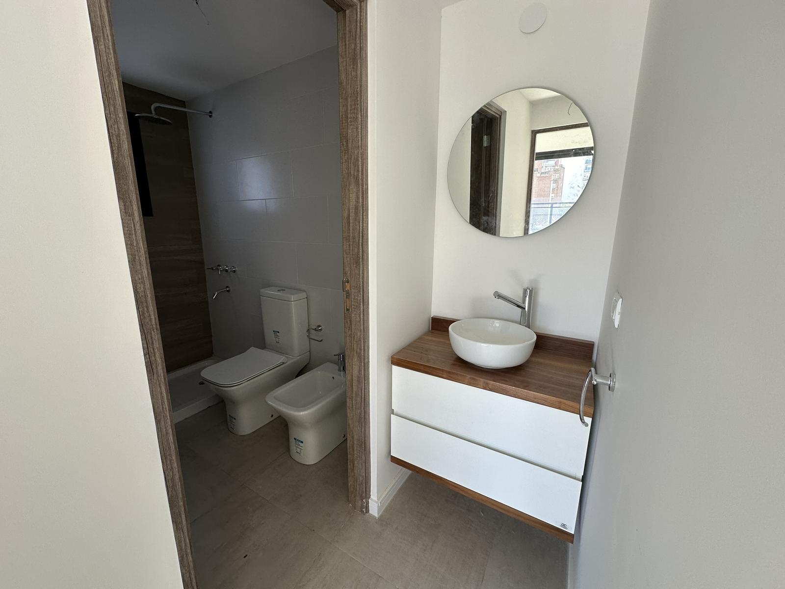 Departamento a estrenar de un dormitorio con orientación Norte. Contra frente. Cocina integrada al estar comedor con gran cantidad de amoblamiento bajo mesada y alacena. Anafe de 4 hornallas, horno embutido, piso porcelanato. aberturas con DVH. Piso flotante melaminico de alto tránsito, placard completo con puertas corredizas. Baño con ante baño, ducha, vanitory, sanitarios y griferias de primera marca. Puerta de seguridad. Pre instalación de AA. Amenities: piscina, quincho, parrillero y solarium. Formas de Pago: Contado. Consulte por financiación disponible. - Información y medidas provistas aproximadas, las cuales se ratificarán con la documentación pertinente suministrada por organismos públicos. En estos casos, al igual que las fotografías ilustrativas, no comprometen contractualmente a nuestra empresa pues no son vinculantes ni contractuales.
