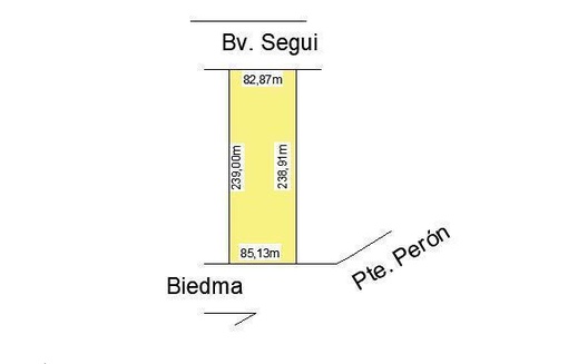 UBICACIÓN: Biedma N°7750, Rosario (a 50 metros de Av. Pte. Perón). MEDIDAS: 85,13m de frente al Sur sobre calle Biedma, 238,91m de lado Este, 239m de ladeo Oeste y 82,17m de frente al Norte sobre Bv. Segui. SUPERFICIE: 20.072m2. TIPIFICACION: Industrial. SERVICIOS: Energía eléctrica, gas natural y calle asfaltada. OTRAS MEJORAS: Cerco perimetral.