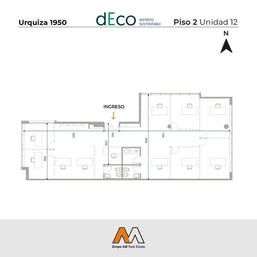 Oficina comercial para diversos usos comerciales. Compuesta por 10 privados, una sala de espera, recepción de ingreso, kitchenette y dos baños servicios. COCHERA Incluidas en el precio. GENERALIDADES En dEco buscamos facilitar la vida de las personas, minimizando los consumos de energía y de materiales, y propiciando la sustentabilidad tanto al interior del proyecto como en su relación con el entorno y con el medio ambiente planetario. Incluye una torre de viviendas, un edificio de oficinas y un edificio patrimonial restaurado para contener espacios de uso profesional y comercial. Una plaza central con acceso semipúblico diurno. Tipologías: -Torre de viviendas de 18 pisos con unidades de 1, 2 y 3 dormitorios. -10 oficinas para uso administrativo o comercial. -Plaza central con acceso semipúblico diurno integra todos los sectores y otorga vida colectiva al proyecto. -Amplias zonas verdes y de esparcimiento en planta baja y azoteas. -3 niveles de cocheras en subsuelos. SUSTENTABILIDAD En dEco las viviendas están diseñadas para obtener una alta calificación en el etiquetado basado en la norma IRAM 11900:2017 de “Prestaciones energéticas en viviendas. Método de cálculo y etiquetado de eficiencia energética”. Esto incluye: Estrategias pasivas de diseño arquitectónico: se busca minimizar el consumo energético y garantizar el confort mediante la optimización de la aislación y la inercia térmicas de muros exteriores, pisos y techos, mediante la protección y la captación solar, el aprovechamiento de las orientaciones, de la forma y el agrupamiento edilicio, de la ventilación natural y de las características del entorno. TERMINACIONES Y EQUIPAMIENTO Porcelanatos de primera marca. Muros interiores y cielorrasos de hormigón visto y roca de yeso. Revestimientos de cocina y baños de primera marca. Sistema de agua caliente sanitaria mediante equipos eléctricos individuales. Sistema de climatización multisplit inverter. Horno y anafe eléctrico. Diseño y construcción aptos para la obtención de una alta calificación en el Etiquetado de Eficiencia Energética. CONFORT Y SEGURIDAD Ascensores de alta velocidad con motor de frecuencia variable y puertas automáticas. Amplias cocheras con acceso mediante suaves rampas de doble circulación. Bicicletero. Grupo electrógeno con circuito de emergencia en cada unidad. Sistema de control de acceso con llave magnética en ingreso general. Hall de ingreso con mostrador de recepción, zona de espera y sala de reuniones. Cabina de vigilancia nocturna con sistema de CCTV y comunicación a departamentos. Instalaciones contra incendio. Tanque de reserva en azotea. AMENITIES Quincho y salón de usos múltiples. Piscina y solárium. Áreas verdes. Sala de reuniones. FECHA DE ENTREGAInmediata FORMA DE PAGO Contado. Se evalúan financiaciones. dEco Distrito Sustentable, desarrollado por la reconocida constructora PELLEGRINET.