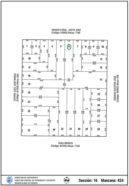 ARGENTE: Fisherton. Urquiza 7700. Entre Donado y Juez Zuviria. 9 x 42,86