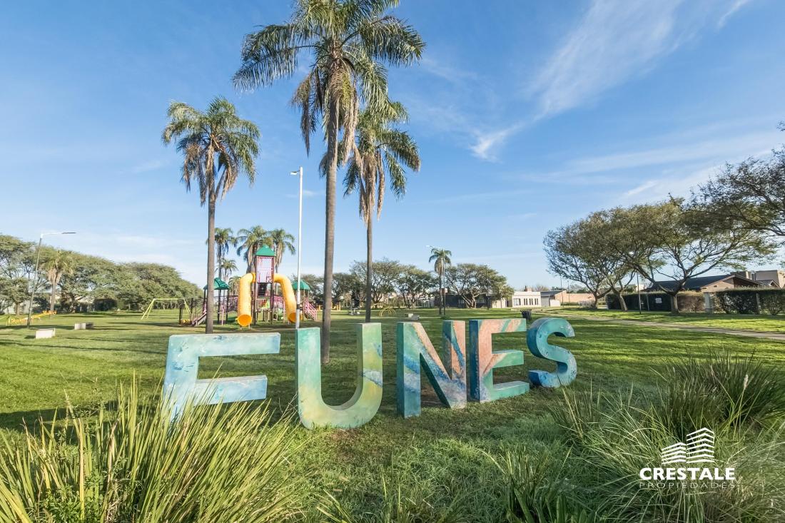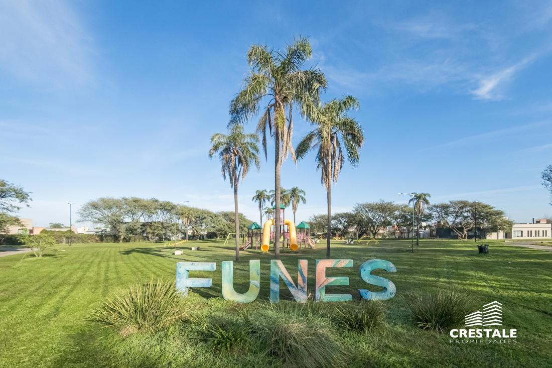 Excepcional lote con fondo Norte.Distinguido barrio abierto de Funes, con excelente accesibilidad por Av. Fuerza Aérea y conexión inmediata a la Autopista Rosario–Córdoba, lo que permite un rápido ingreso a la ciudad de Rosario. La zona se encuentra urbanizada, con servicios de gas natural, electricidad, calles asfaltadas y cerco perimetral general que garantiza seguridad. Su entorno residencial y el fácil acceso a centros urbanos lo convierten en una oportunidad ideal para desarrollos habitacionales o como inversión a futuro. FORMA DE PAGO Contado.Código web: CBA64721 LA7100302